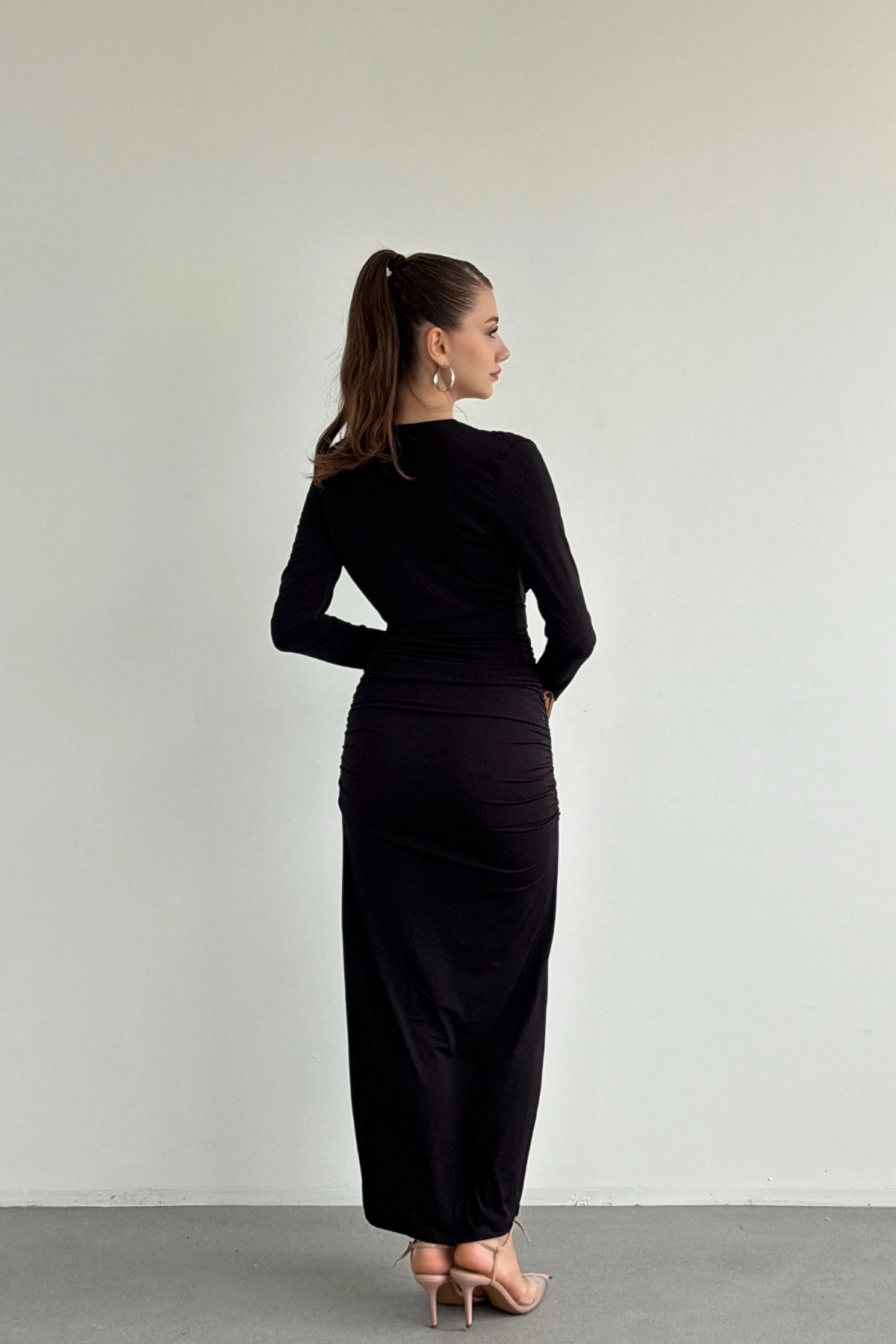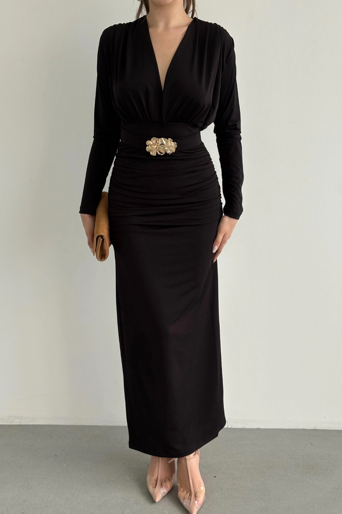 Siyah Kemerli Vatka Detay Elbise Siyah Kemerli Vatka Detay Elbise 8007 XL