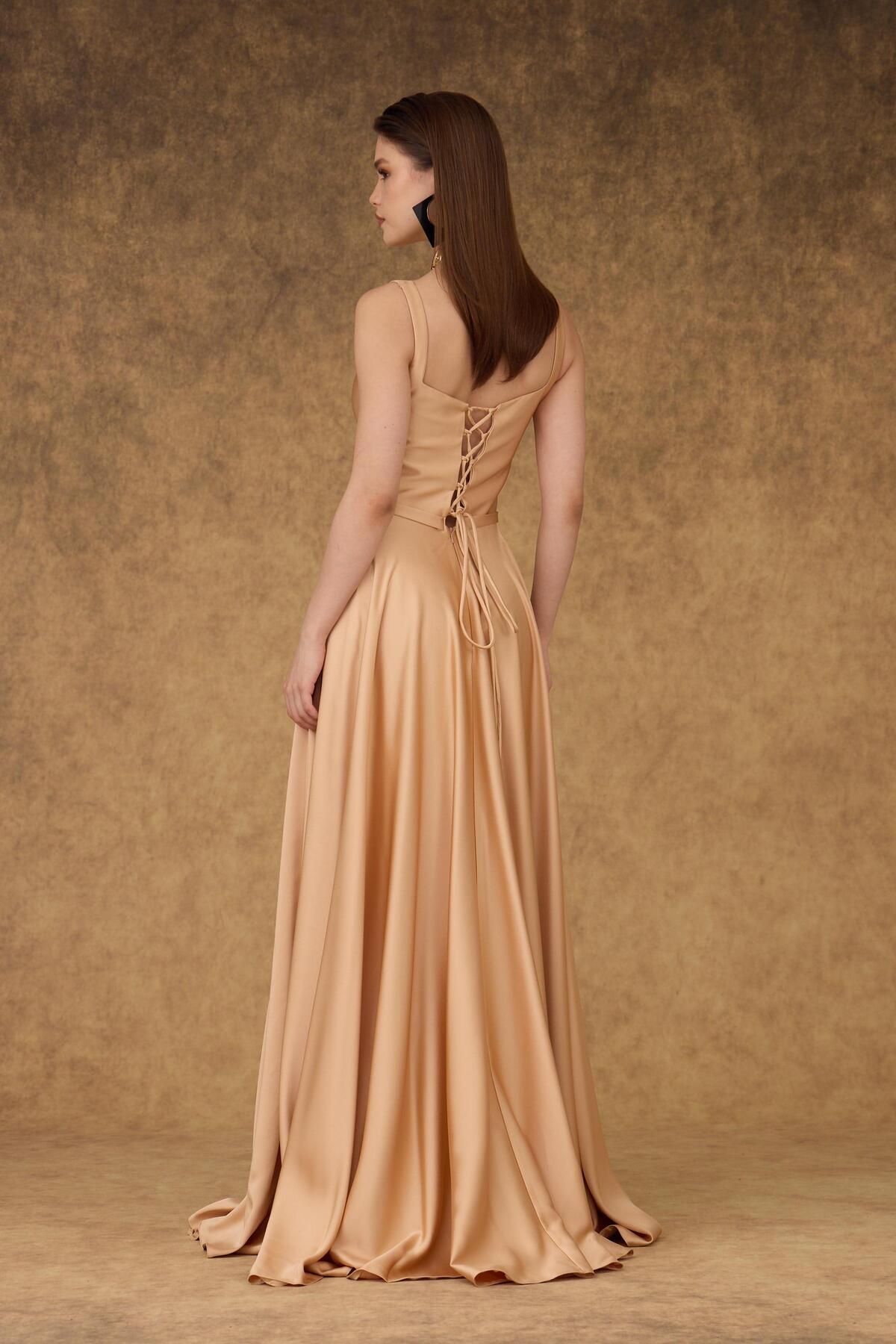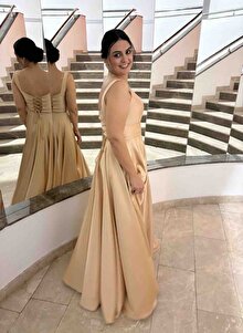 Gold Kare Yaka Saten Abiye Elbise Gold Kare Yaka Saten Abiye Elbise 58506 48
