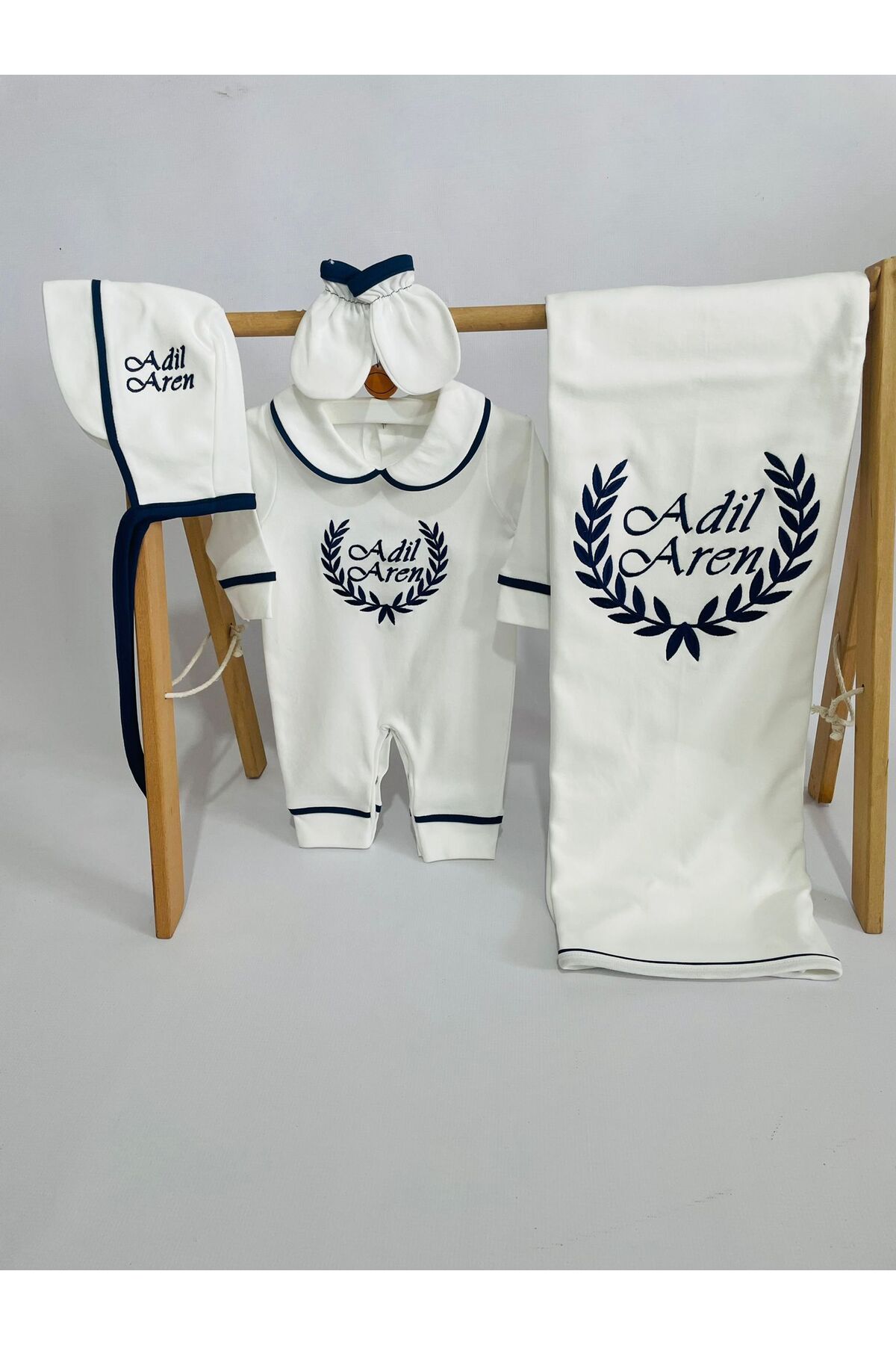 İsme Özel Baskılı Bonet Şapkalı 3'lü Pamuklu Tulum Seti İsme Özel Baskılı Bonet Şapkalı 3'lü Pamuklu Tulum Seti A1-AYBARS 3-6 AY