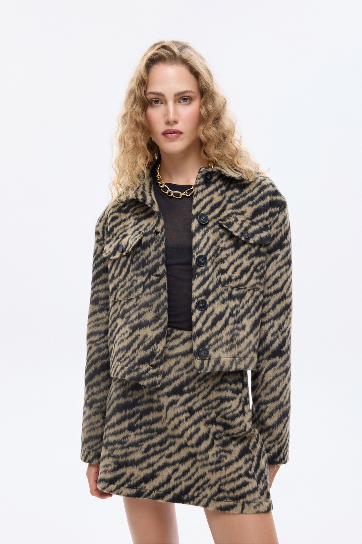 Leopar Desenli Fermuarlı Bomber Ceket Taş Leopar Desenli Fermuarlı Bomber Ceket Taş 25YCKT00123 L