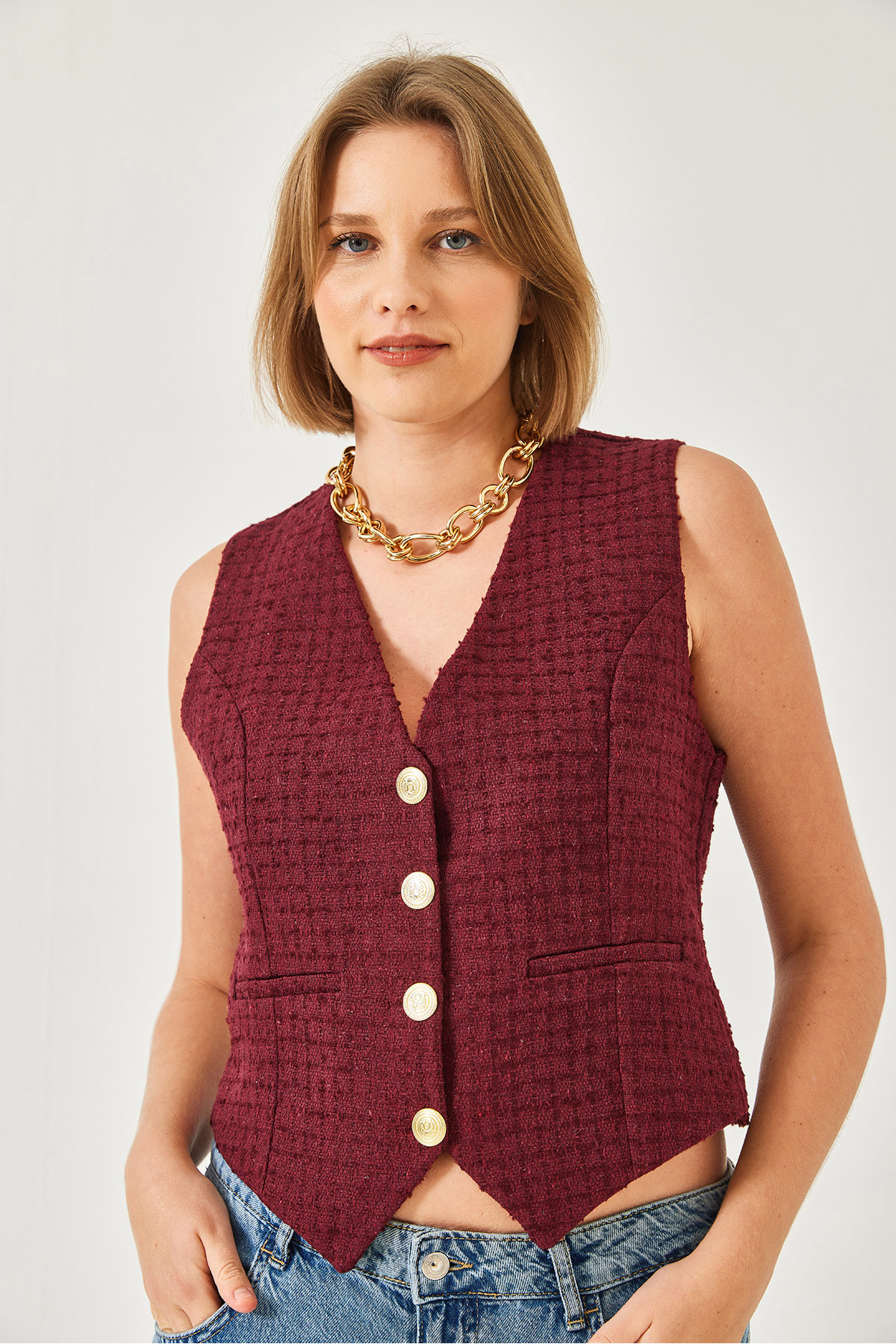 Kadın Metal Düğme Detaylı Tüvit Yelek 60155 60271012 Kadın Metal Düğme Detaylı Tüvit Yelek 60155 60271012 40