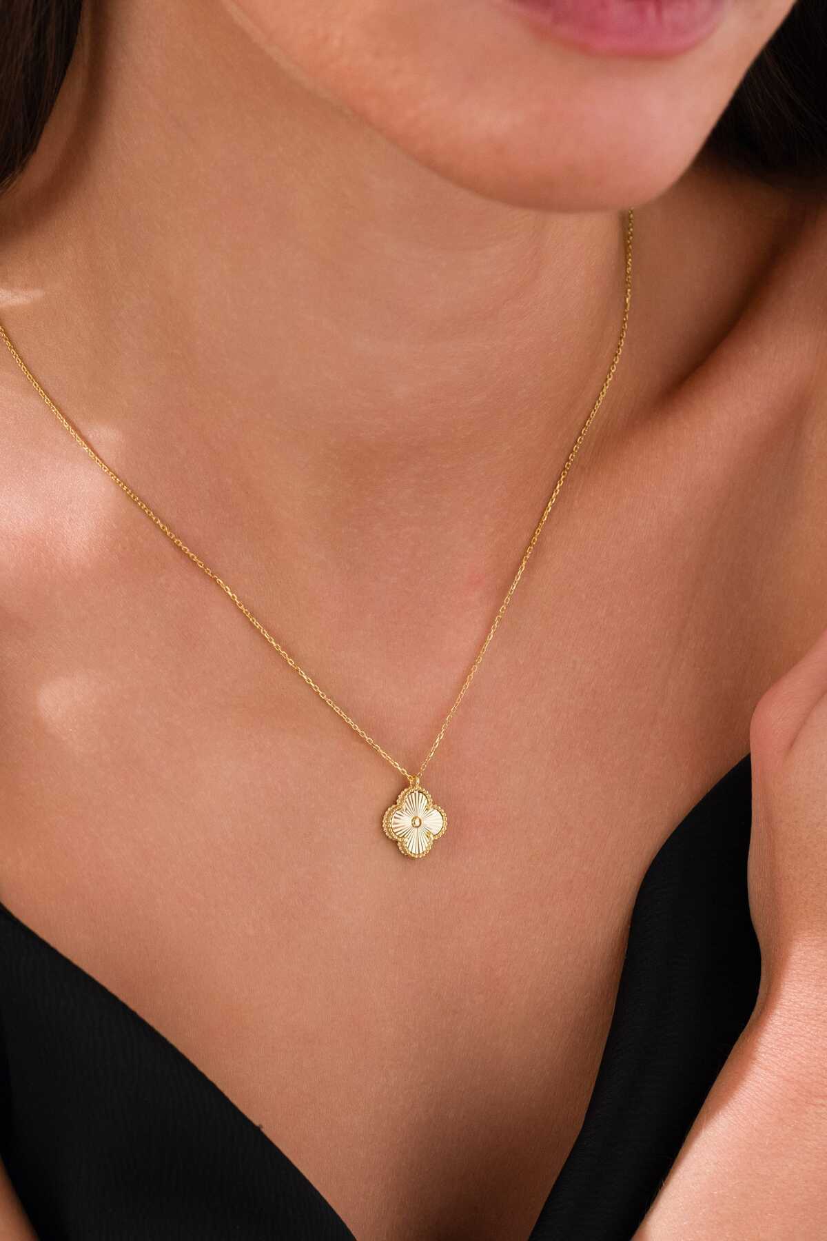 Yonca Şans Model Şık ve Zarif Tasarım Lazer Kalem İşlemeli Altın Kaplama 925 Ayar Gümüş Kolye Yonca Şans Model Şık ve Zarif Tasarım Lazer Kalem İşlemeli Altın Kaplama 925 Ayar Gümüş Kolye Acestes-VC-KL0778 40 cm