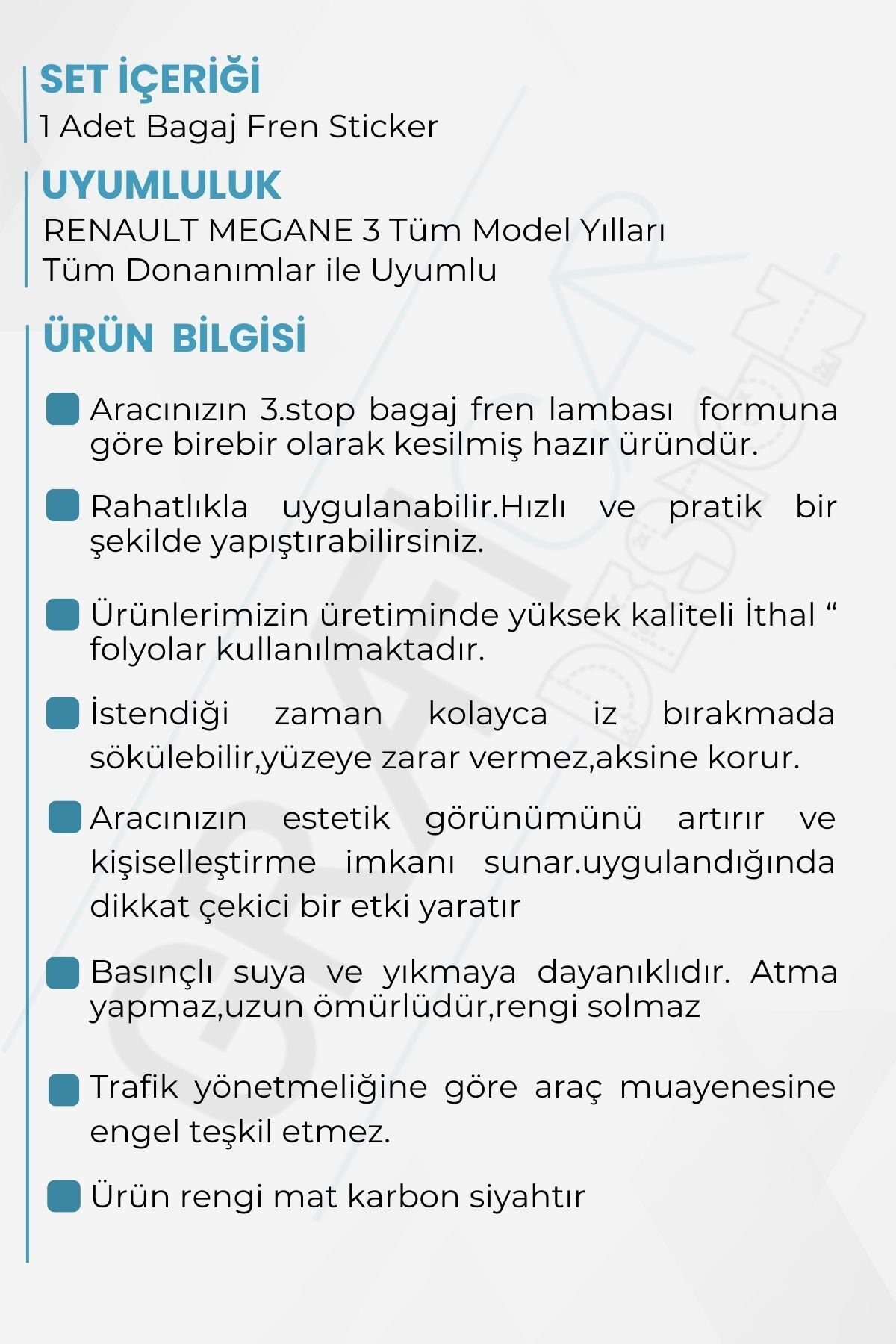 Renault Megane 3 Bagaj Fren Sticker Renault Megane 3 Bagaj Fren Sticker STC098 تک سایز