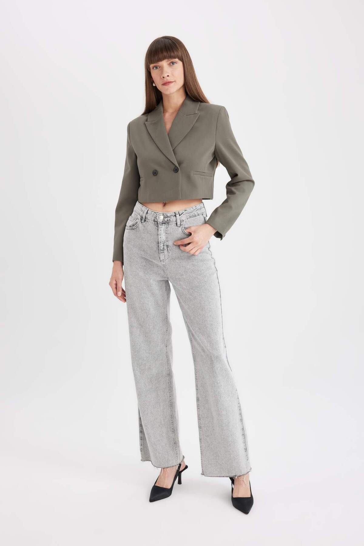 Crop Ceket Yaka Düğmeli Blazer Ceket C6671AX24AU Crop Ceket Yaka Düğmeli Blazer Ceket C6671AX24AU 42