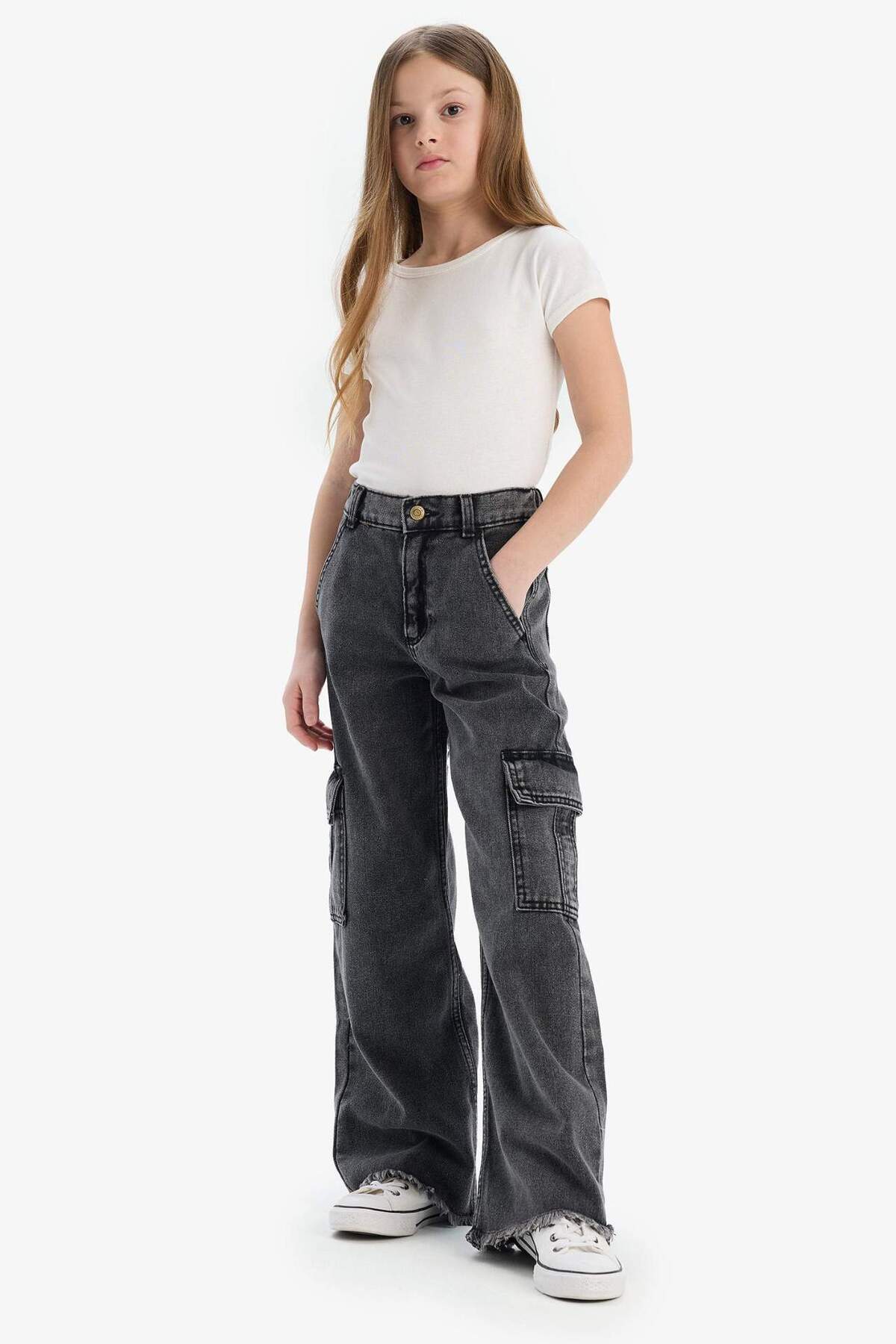 Kız Çocuk Wide Leg Kargo Geniş Bol Paça Pamuklu Jean Pantolon D7090A825SP Kız Çocuk Wide Leg Kargo Geniş Bol Paça Pamuklu Jean Pantolon D7090A825SP 13-14 Yaş