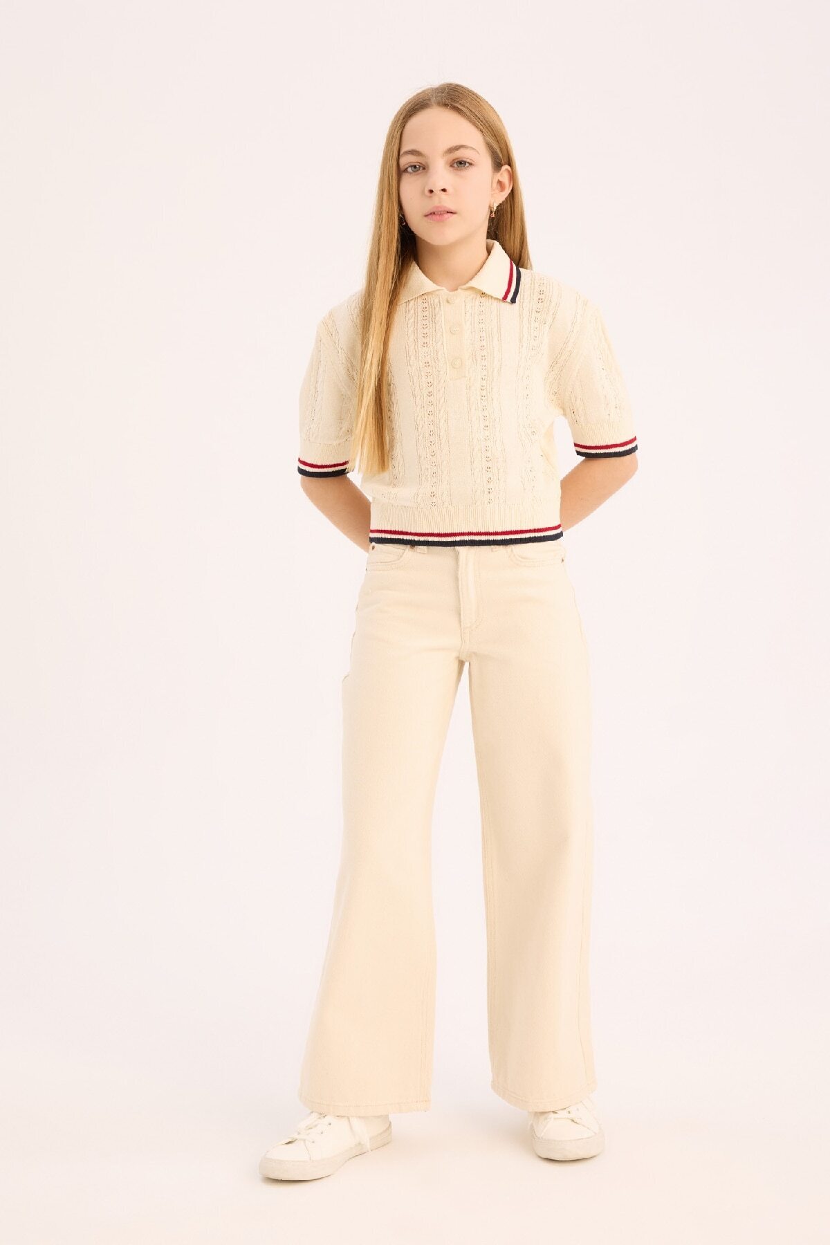 Kız Çocuk Cropped Fit Polo Yaka Triko Kazak E0364A825SP Kız Çocuk Cropped Fit Polo Yaka Triko Kazak E0364A825SP 13-14 Yaş
