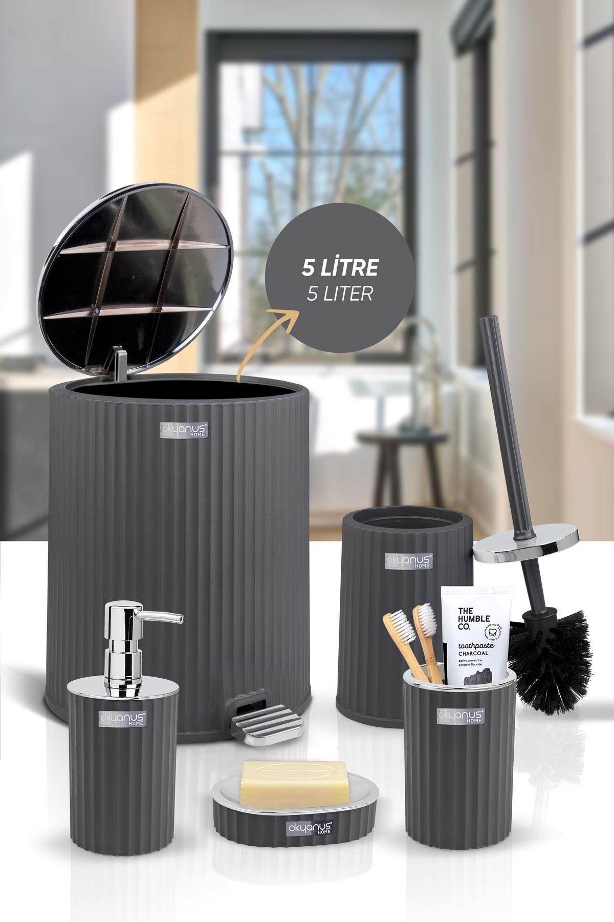 Coliseum Antrasit Kromlu Iç Kovalı Pedallı 5'li Banyo Seti Coliseum Antrasit Kromlu Iç Kovalı Pedallı 5'li Banyo Seti OKY-450-1 تک سایز