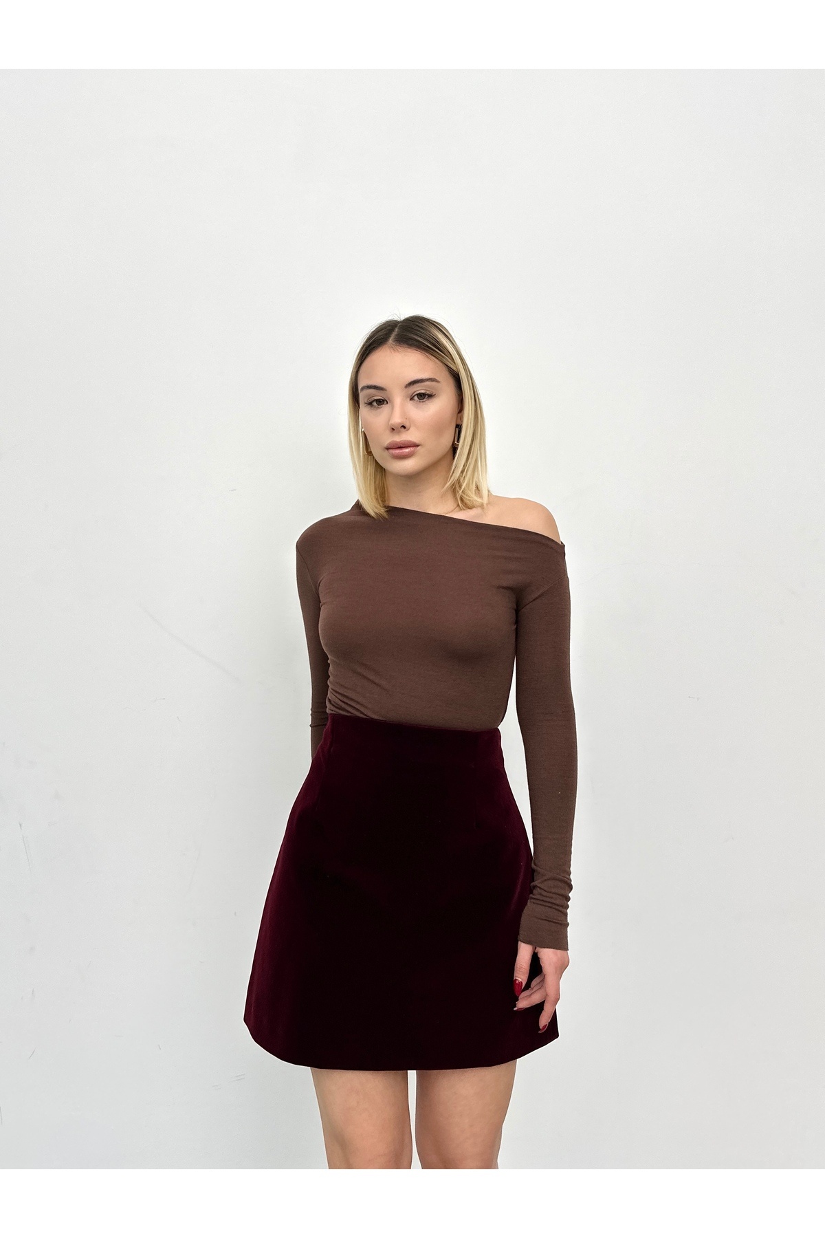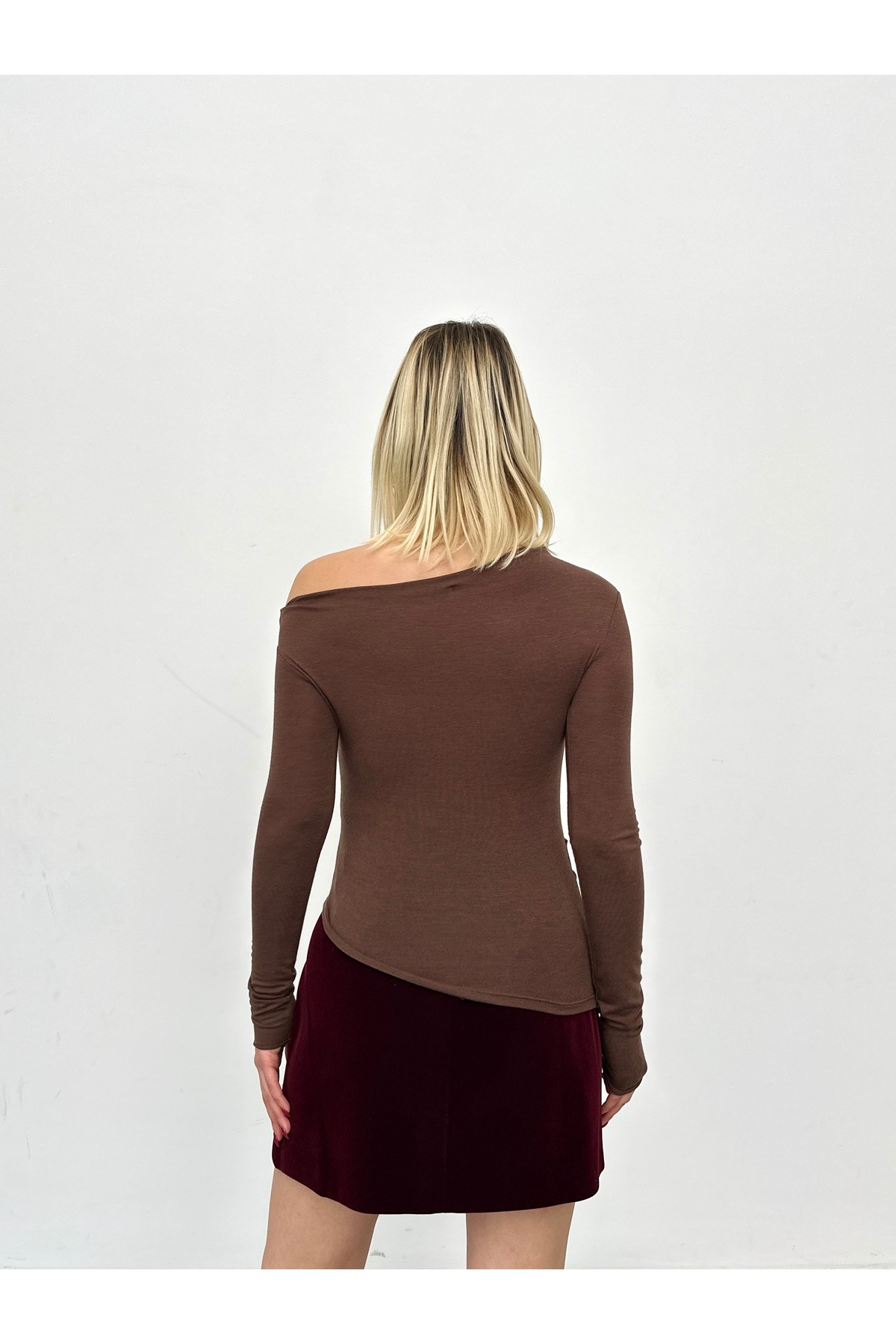 Kadın Omzu Açık Kaşmir Karışımlı Bluz Tişört Kadın Omzu Açık Kaşmir Karışımlı Bluz Tişört TYC30008D2849DCC09 L