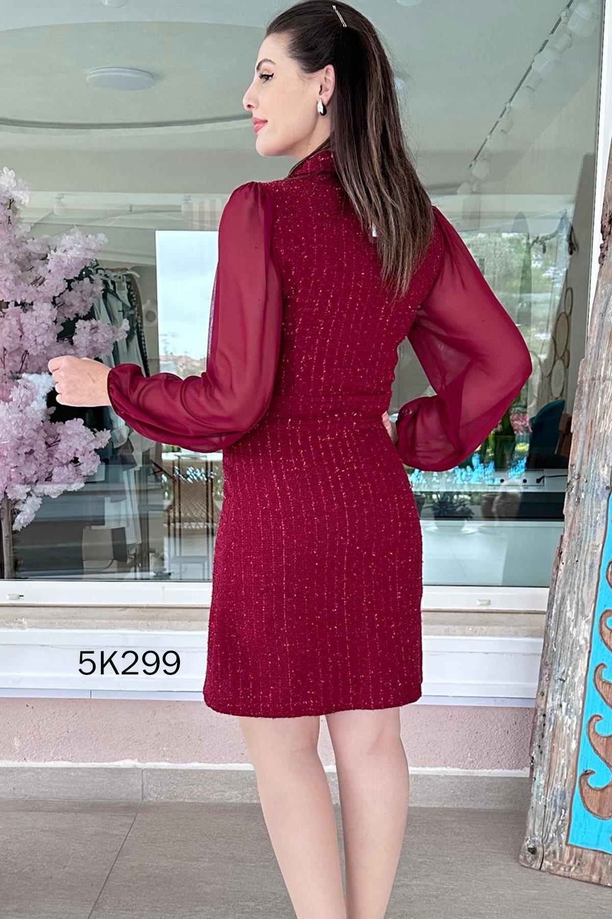 Yakalı Şifon Kol Simli Channel Elbise 5k299 Yakalı Şifon Kol Simli Channel Elbise 5k299 XL