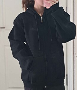 Kadın 3 İplik Oversize Kapüşonlu Fermuarlı Hırka Sweatshirt Kadın 3 İplik Oversize Kapüşonlu Fermuarlı Hırka Sweatshirt TYMHRK XL