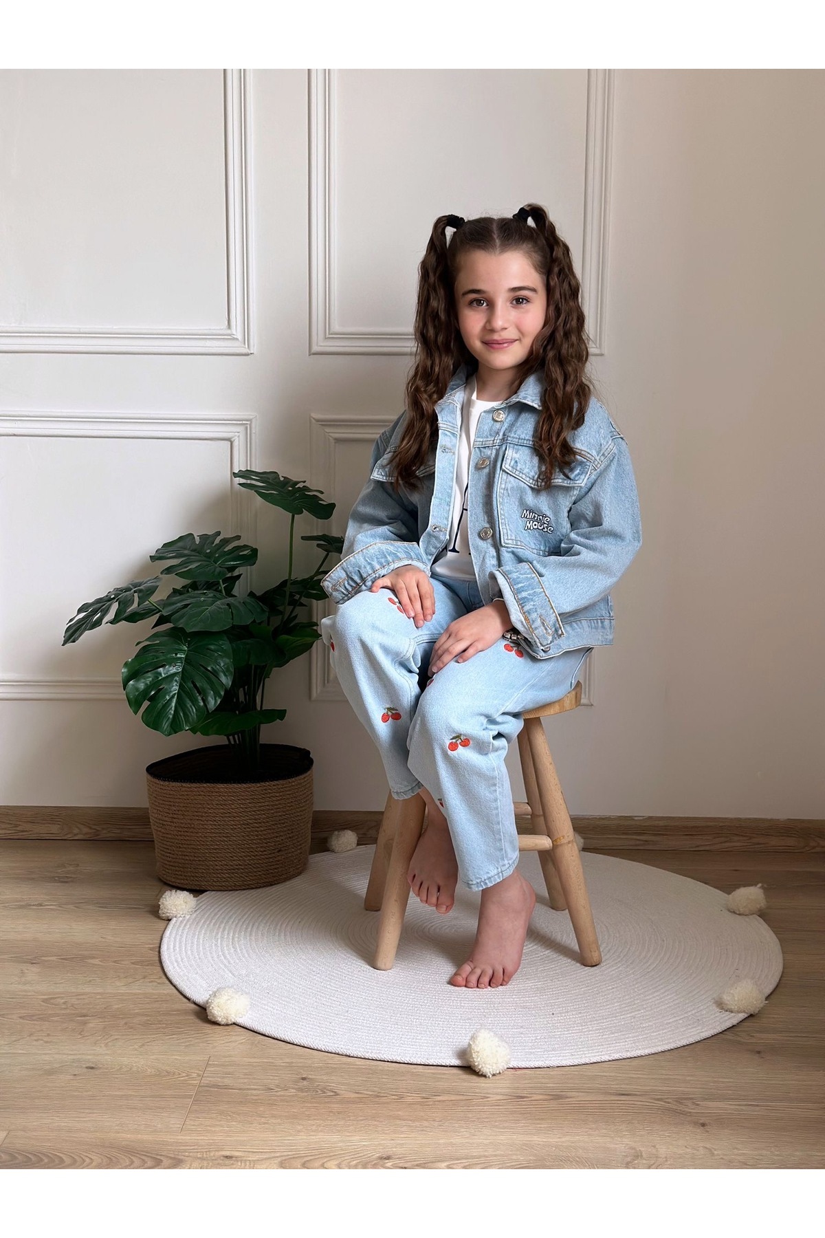 Kiraz Desenli Kot Pantolon Kiraz Desenli Kot Pantolon kiraz 2-3 Yaş