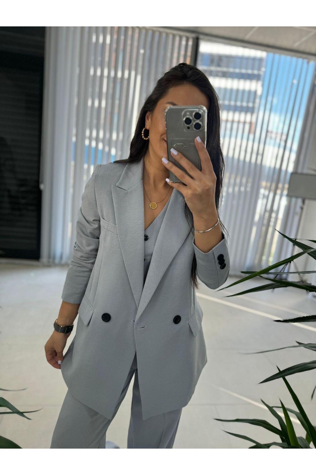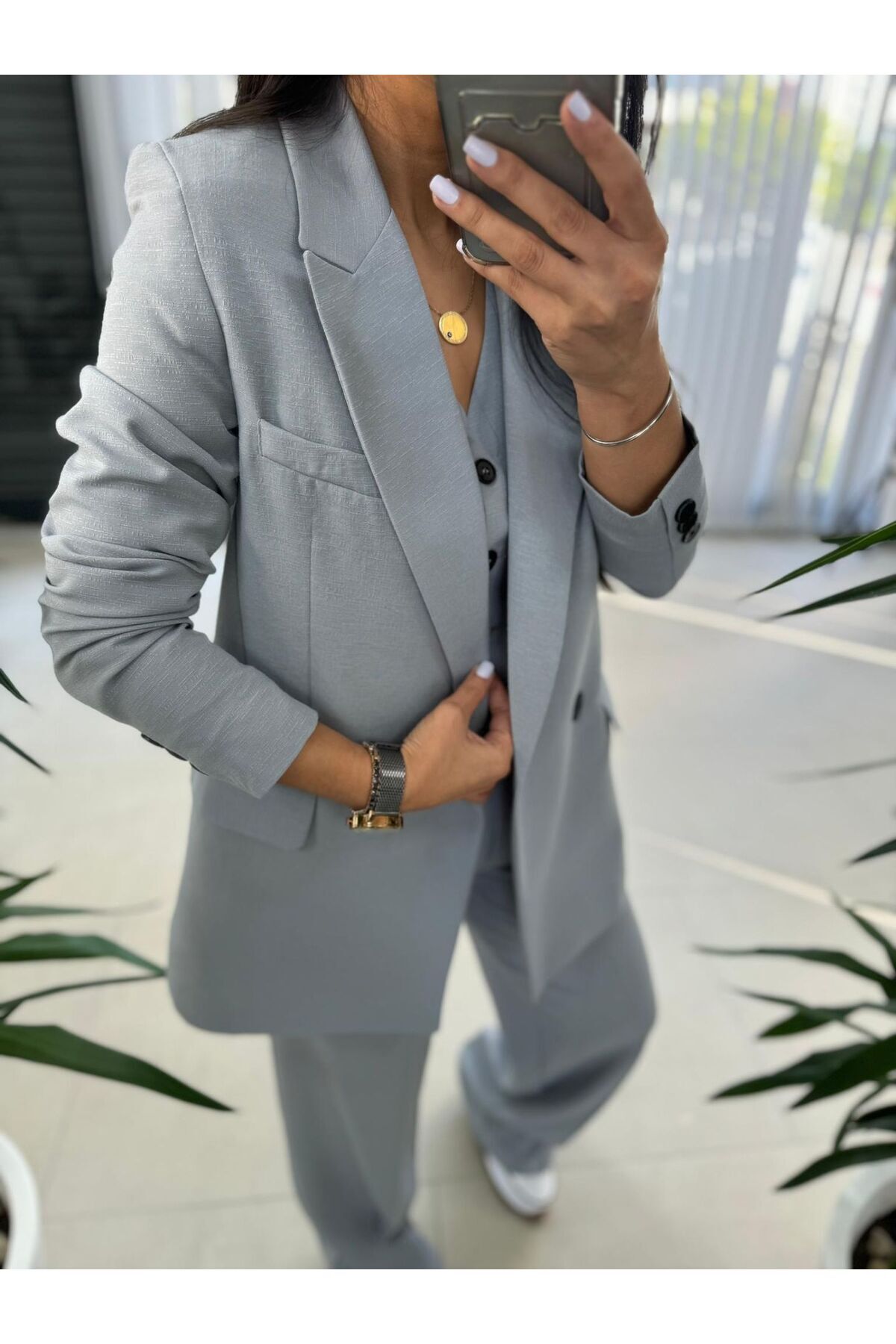 Foo Gri Keten Blazer Ceket Foo Gri Keten Blazer Ceket FooGriketenBlazerCeket XL