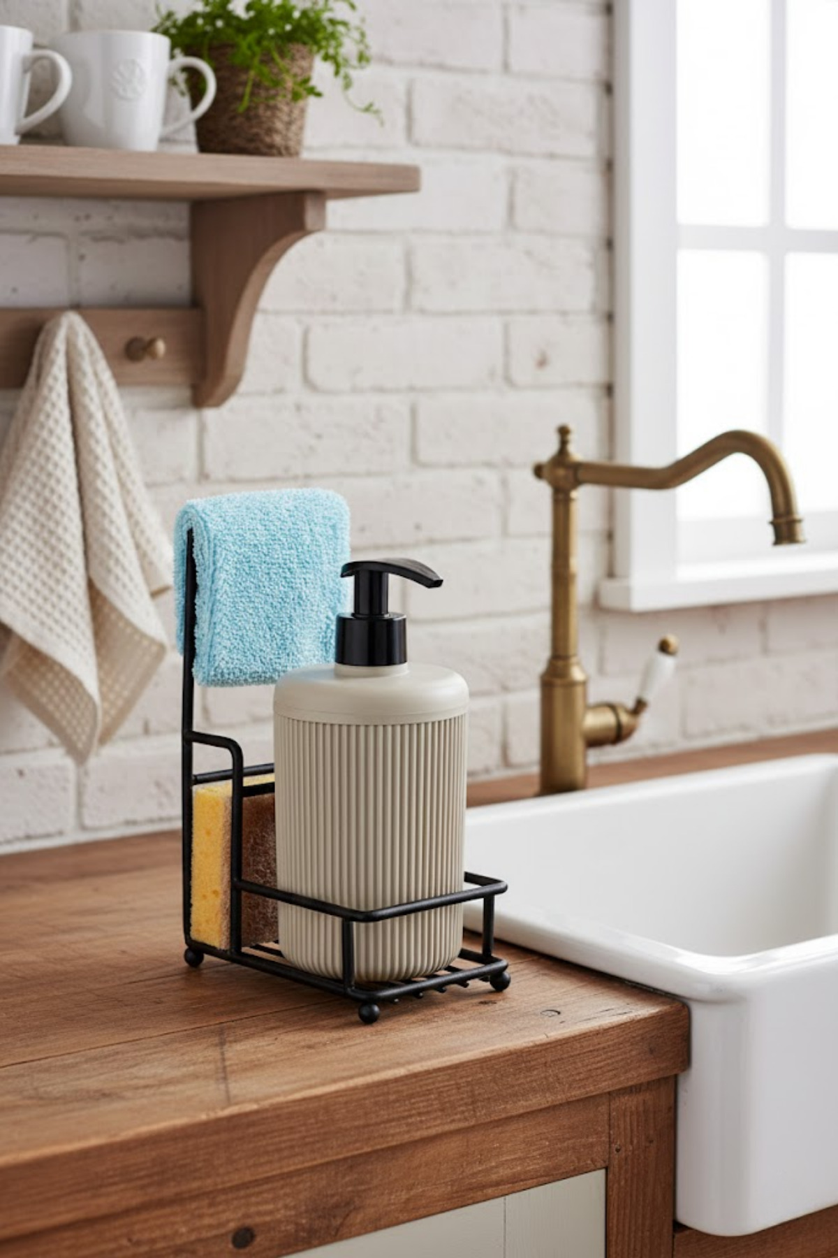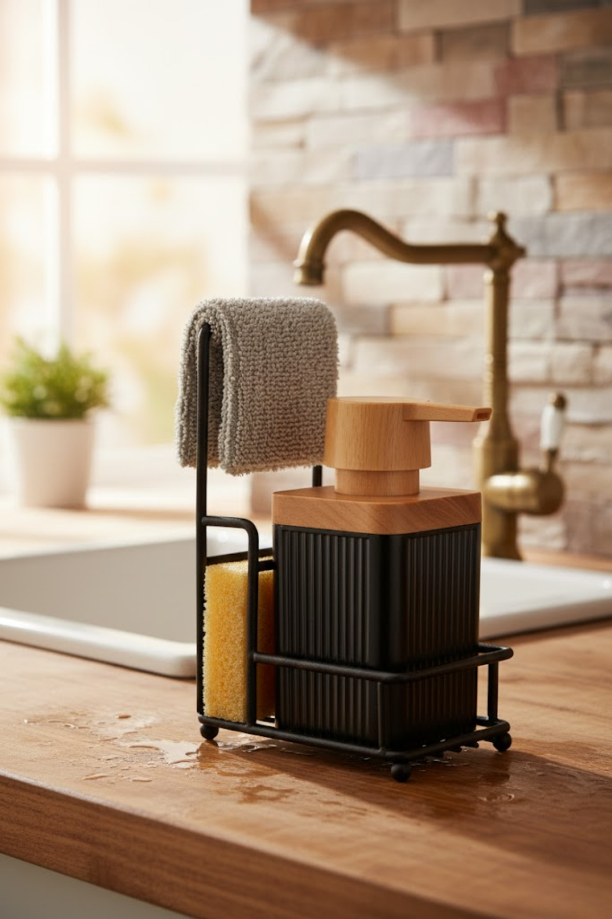Metal Standlı Süngerli Tekli Şeffaf Ahşap Akrilik Bulaşık Deterjanı Sıvı Sabunluk -Bez Askılığı Metal Standlı Süngerli Tekli Şeffaf Ahşap Akrilik Bulaşık Deterjanı Sıvı Sabunluk -Bez Askılığı GM00634 تک سایز