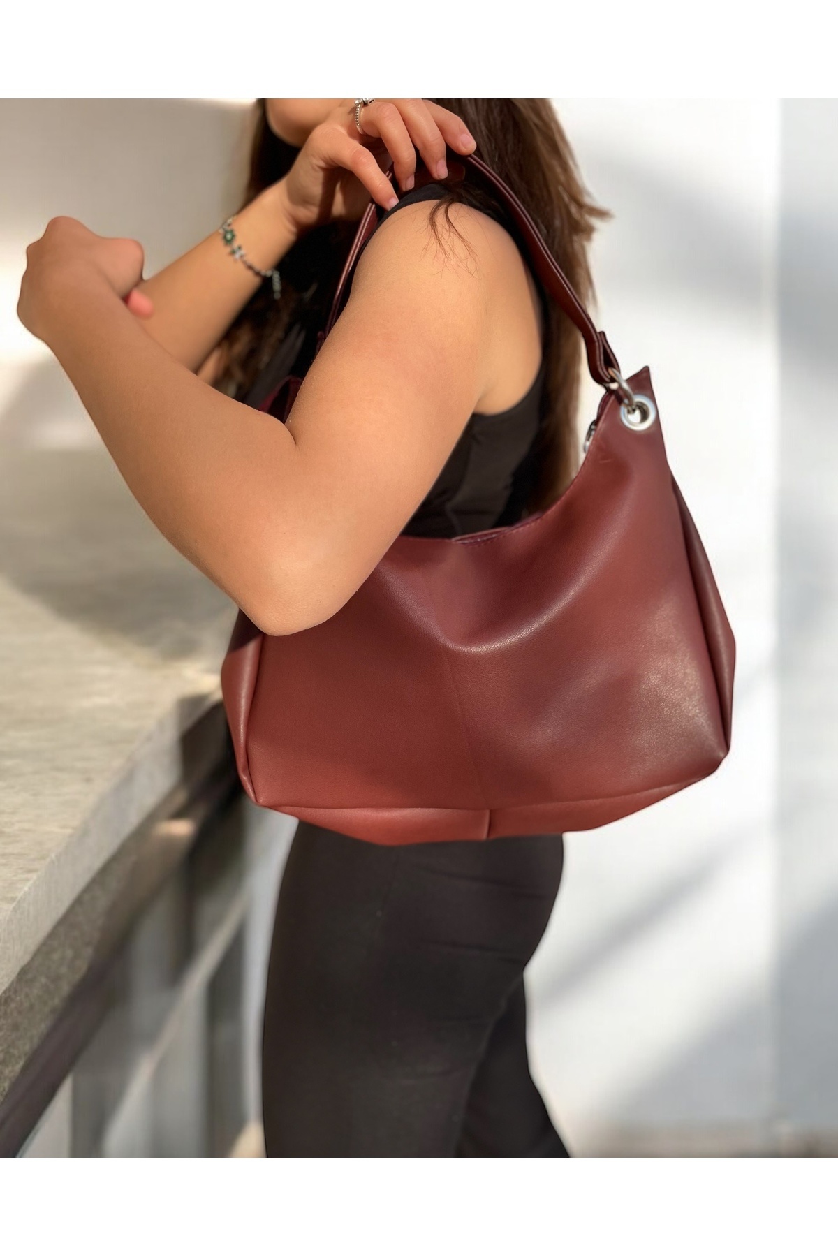 Kadın Bordo Halka Detaylı Salaş Omuz Çantası Kadın Bordo Halka Detaylı Salaş Omuz Çantası TokBag03 31 x 36