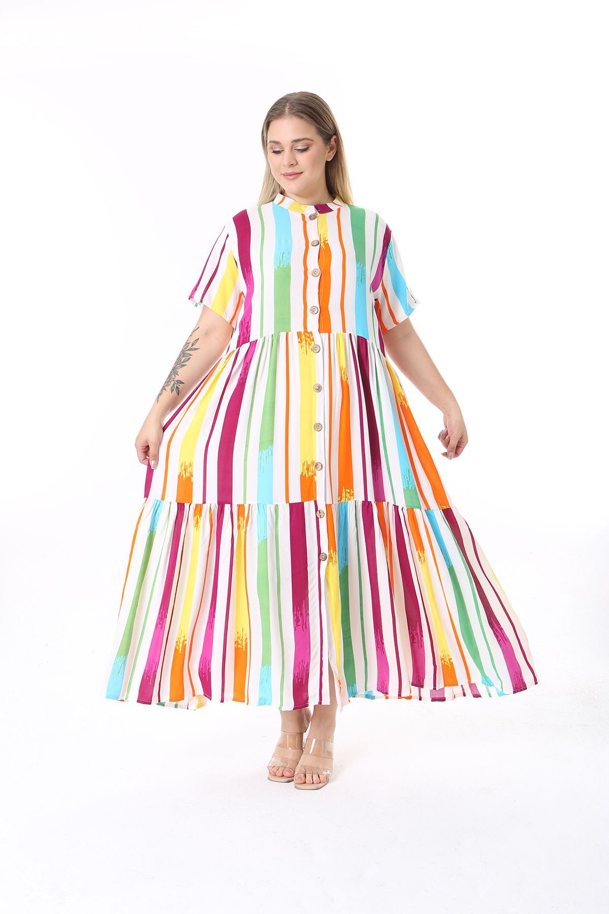 KADIN BÜYÜK BEDEN LİKRALI ELBİSE KADIN BÜYÜK BEDEN LİKRALI ELBİSE H7402 64-66