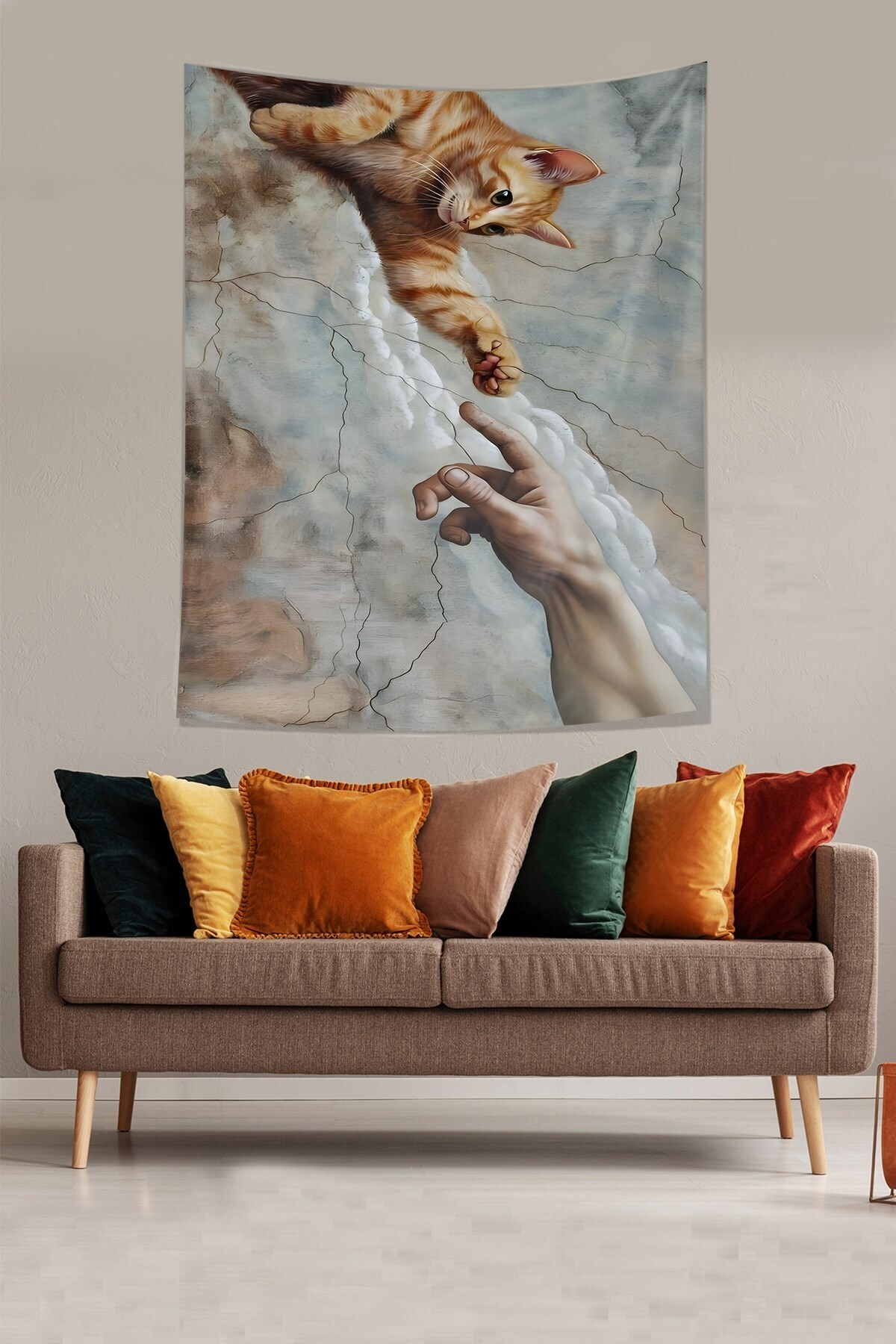 Rönesans Ademin Yaratılışı Mizah Kedi Patisi Leke Tutmaz Kumaş Duvar Örtüsü Duvar Halısı Tapestry Rönesans Ademin Yaratılışı Mizah Kedi Patisi Leke Tutmaz Kumaş Duvar Örtüsü Duvar Halısı Tapestry PNTRS36 140 x 230