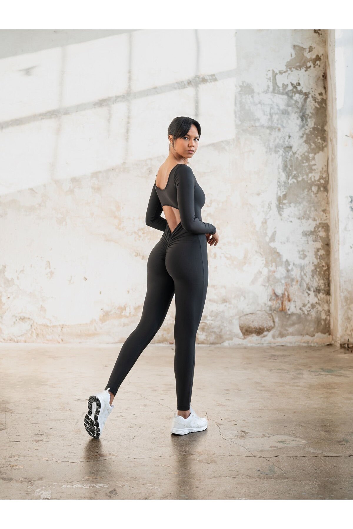 Siyah Uzun Kollu Arkası Büzgülü ( Scrunch Butt ) Spor Tayt Tulum Siyah Uzun Kollu Arkası Büzgülü ( Scrunch Butt ) Spor Tayt Tulum 02500 XL