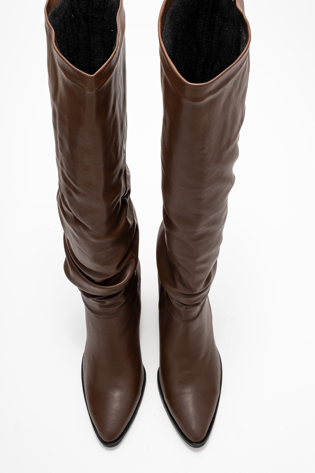 SEJAS Kahverengi Hakiki Deri Kadın Topuklu Çizme SEJAS Kahverengi Hakiki Deri Kadın Topuklu Çizme 75-0404 42