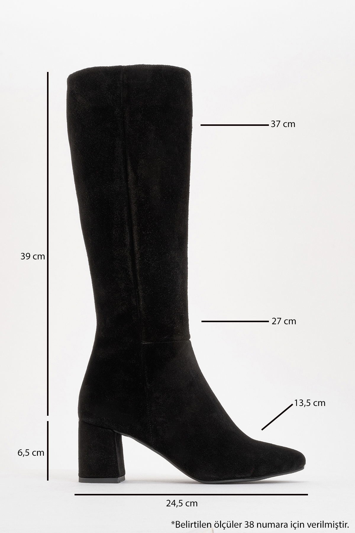 SEJAS Siyah Hakiki Deri Süet Kadın Topuklu Çizme SEJAS Siyah Hakiki Deri Süet Kadın Topuklu Çizme 75-0404 42