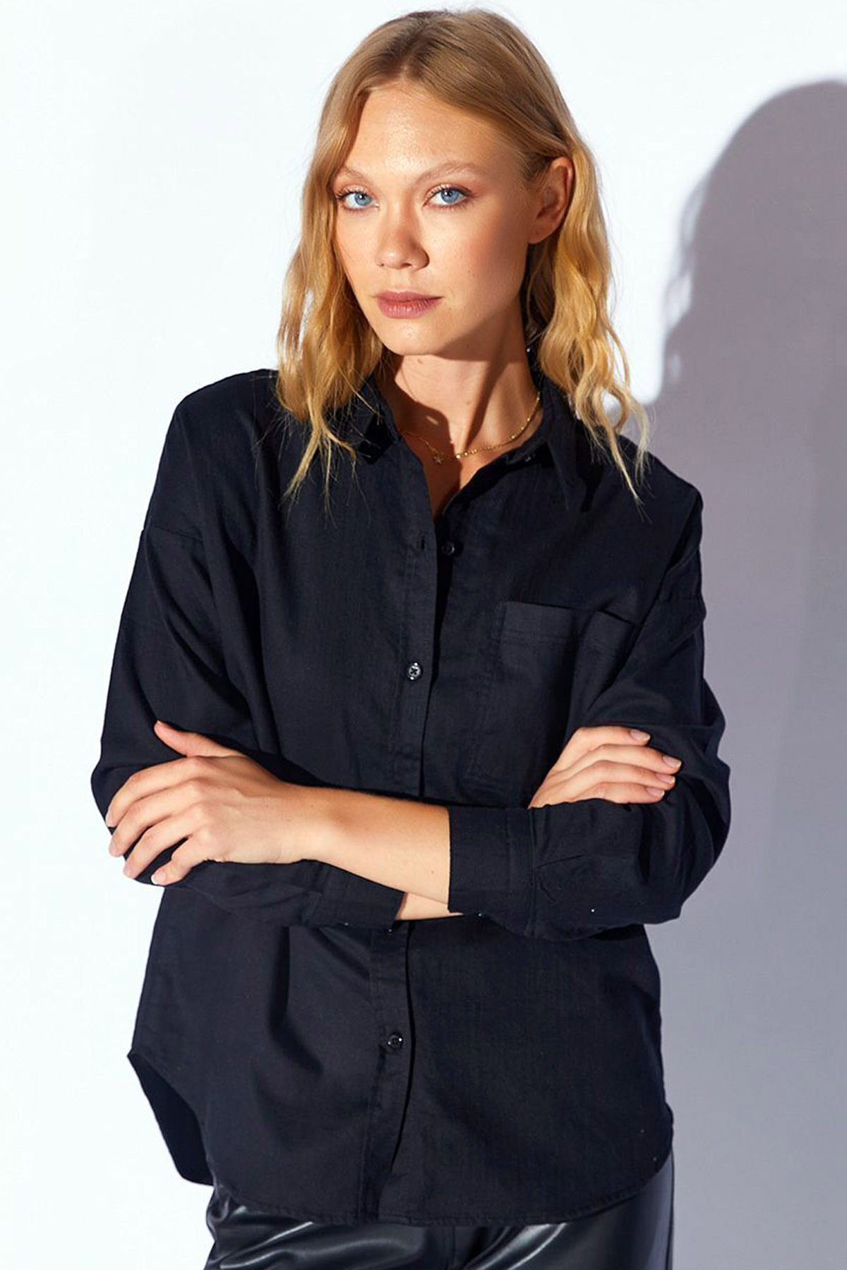 Yakalı Manşetli Uzun Kollu Rahat Kalıp Gizli Pat Düğmeli Cepli Şık ve Cool Yumuşak Dokulu Gömlek Yakalı Manşetli Uzun Kollu Rahat Kalıp Gizli Pat Düğmeli Cepli Şık ve Cool Yumuşak Dokulu Gömlek ADRP-2123 L