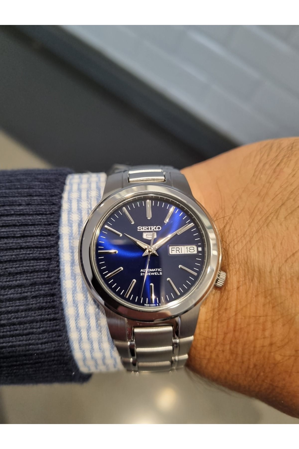 SEİKO 5- OTOMATİK Lacivert Kadran Takvimli Çelik Bilezik 3 ATM Su Geçirmez Erkek Kol Saati SEİKO 5- OTOMATİK Lacivert Kadran Takvimli Çelik Bilezik 3 ATM Su Geçirmez Erkek Kol Saati SEİKO1115 تک سایز