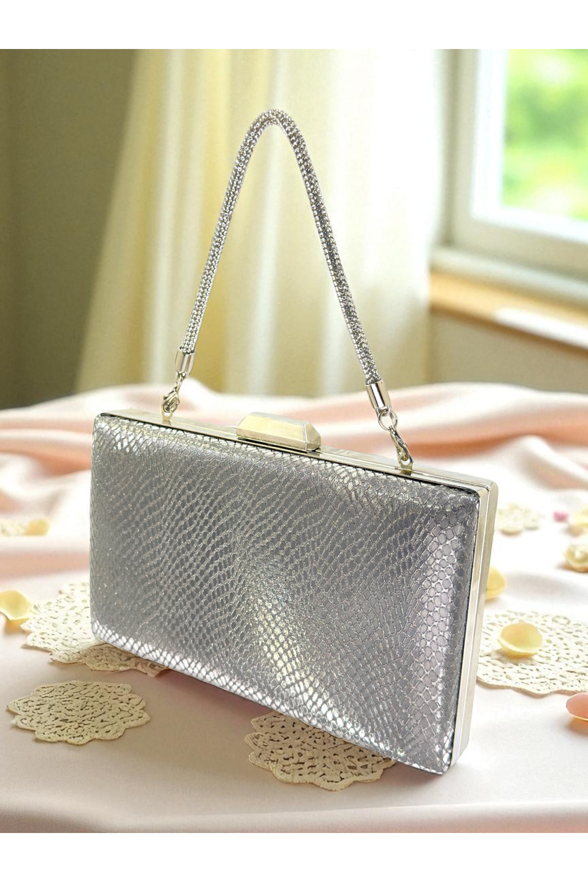 Gümüş Renk Taşlı Abiye Çanta Clutch Mezuniyet Balo Çantası El Çantası Gümüş Renk Taşlı Abiye Çanta Clutch Mezuniyet Balo Çantası El Çantası WF 135 Şablon تک سایز