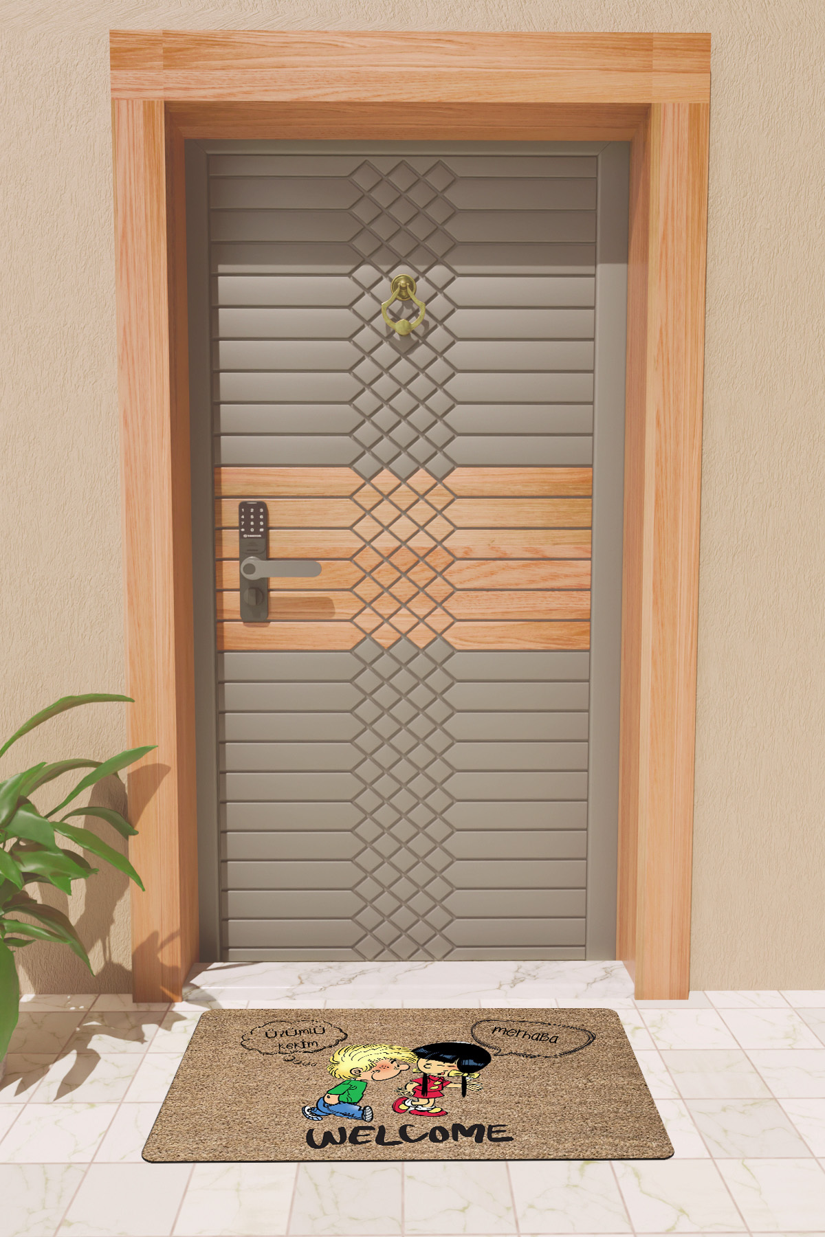 Modern Dijtal Baskı Kahverengi Üzümlü Kekim Merhaba Kapı Önü Paspası Modern Dijtal Baskı Kahverengi Üzümlü Kekim Merhaba Kapı Önü Paspası 4021 45 x 70