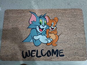 Modern Dijtal Baskı Kahverengi Welcome Tom ve Jerry Kapı Önü Paspası Modern Dijtal Baskı Kahverengi Welcome Tom ve Jerry Kapı Önü Paspası 4009 45 x 70