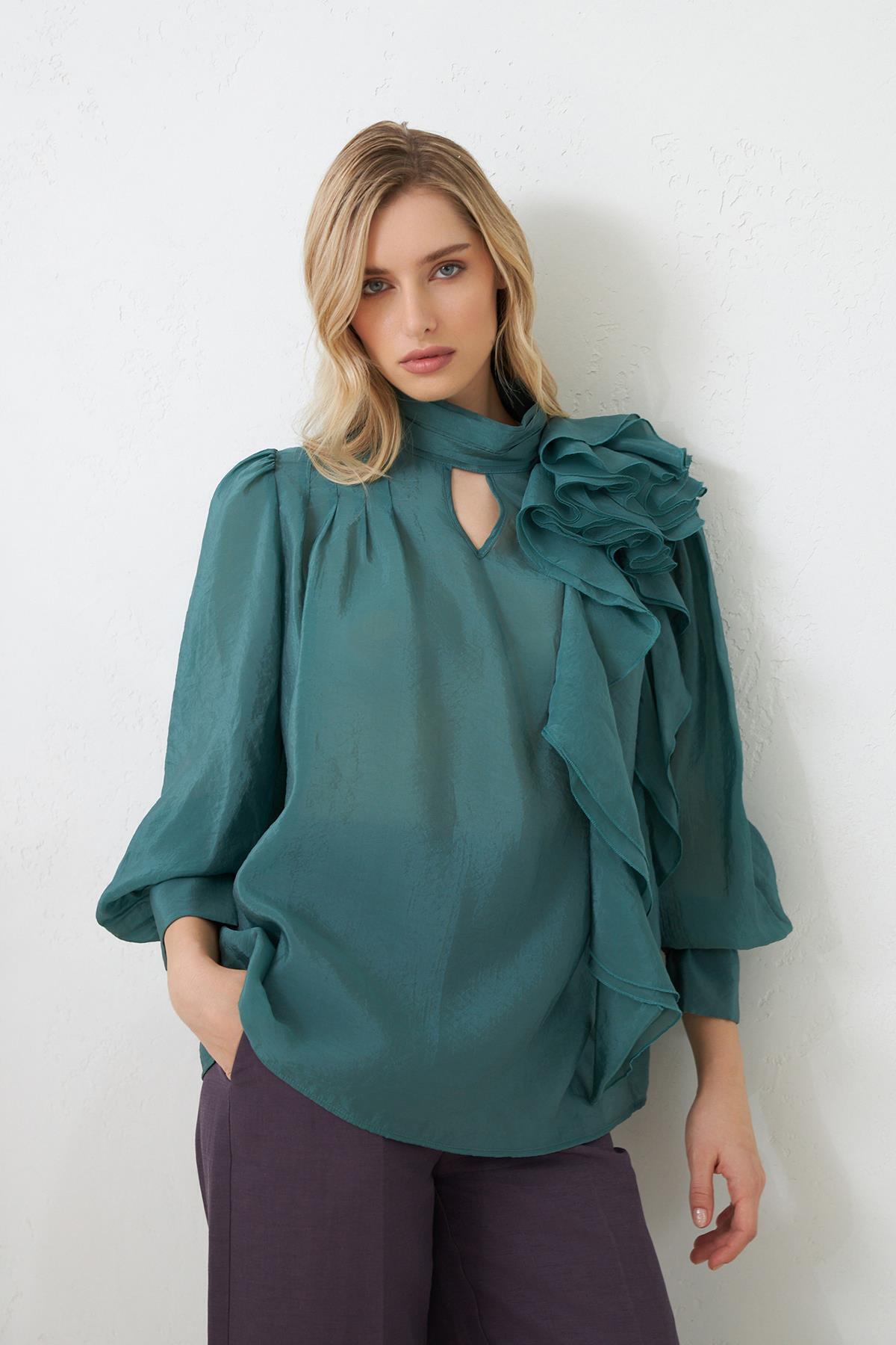 Yeşil Yakada Gül Ve Boyun Detaylı Uzun Kollu Geniş Kalıp Bluz Yeşil Yakada Gül Ve Boyun Detaylı Uzun Kollu Geniş Kalıp Bluz ST20250W3012641 XL