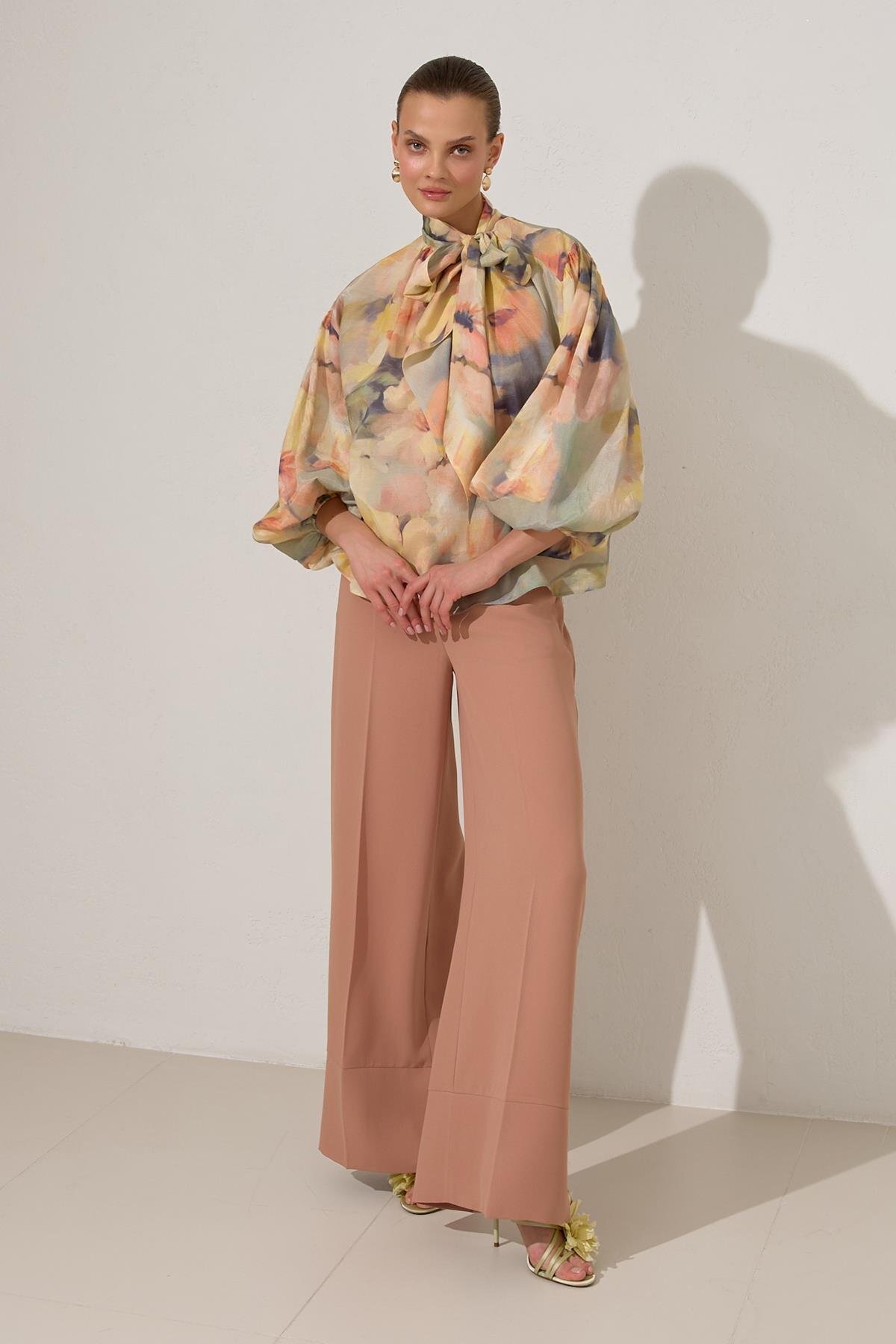 Krem Geniş Kalıp Boyundan Tül Detaylı Salaş Rahat Kesim Bluz Krem Geniş Kalıp Boyundan Tül Detaylı Salaş Rahat Kesim Bluz ST20250S3012681 XL