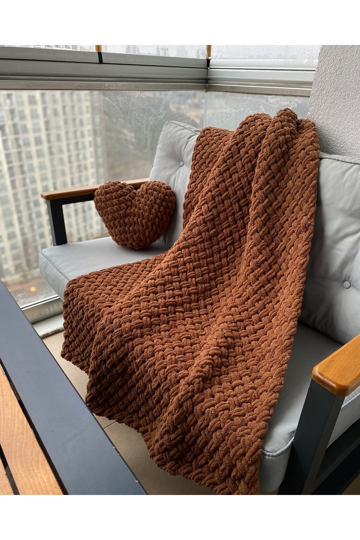 El Örgüsü Puffy Kalp Yastık Ve Battaniye 100x160 El Örgüsü Puffy Kalp Yastık Ve Battaniye 100x160 6266626627772 96 x 150