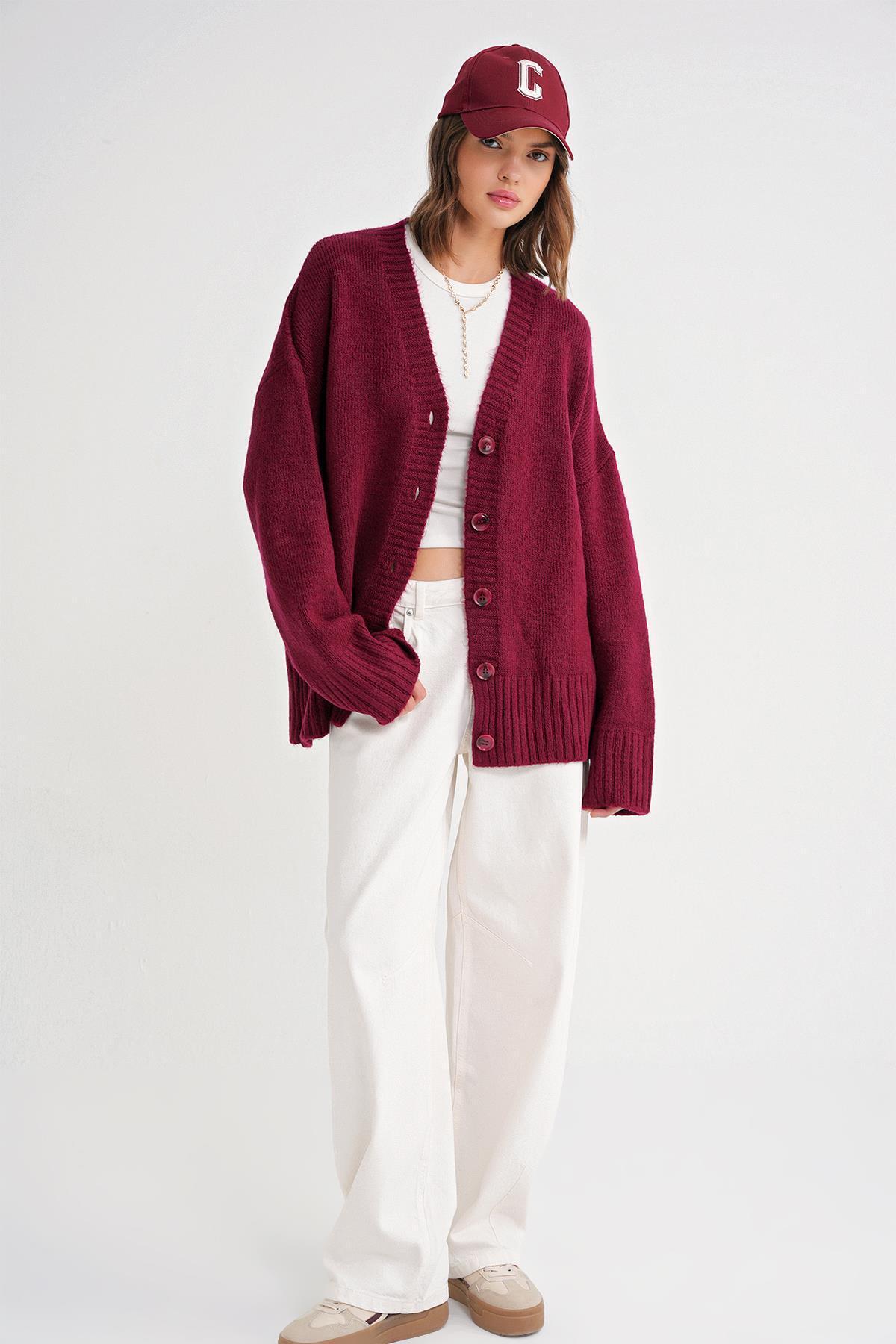 6927 Kadın Yumuşak Dokulu Salaş Basic Triko Hırka Bordo 6927 Kadın Yumuşak Dokulu Salaş Basic Triko Hırka Bordo K24HRK6927 Standart