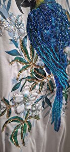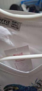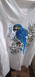 Kadın Beyaz V Yaka Papağan Desenli, Pul Payet Işlemeli %100 Pamuklu T-shirt - Beyaz Tişört Kadın Beyaz V Yaka Papağan Desenli, Pul Payet Işlemeli %100 Pamuklu T-shirt - Beyaz Tişört PulPayetTişört L