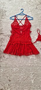 Kadın Kırmızı Dantelli Takım 1621 . Kadın Kırmızı Dantelli Takım 1621 . XL