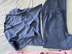 İndigo Pamuklu Fiyonk Detaylı Pijama Takımı İndigo Pamuklu Fiyonk Detaylı Pijama Takımı BNPR7067 XL