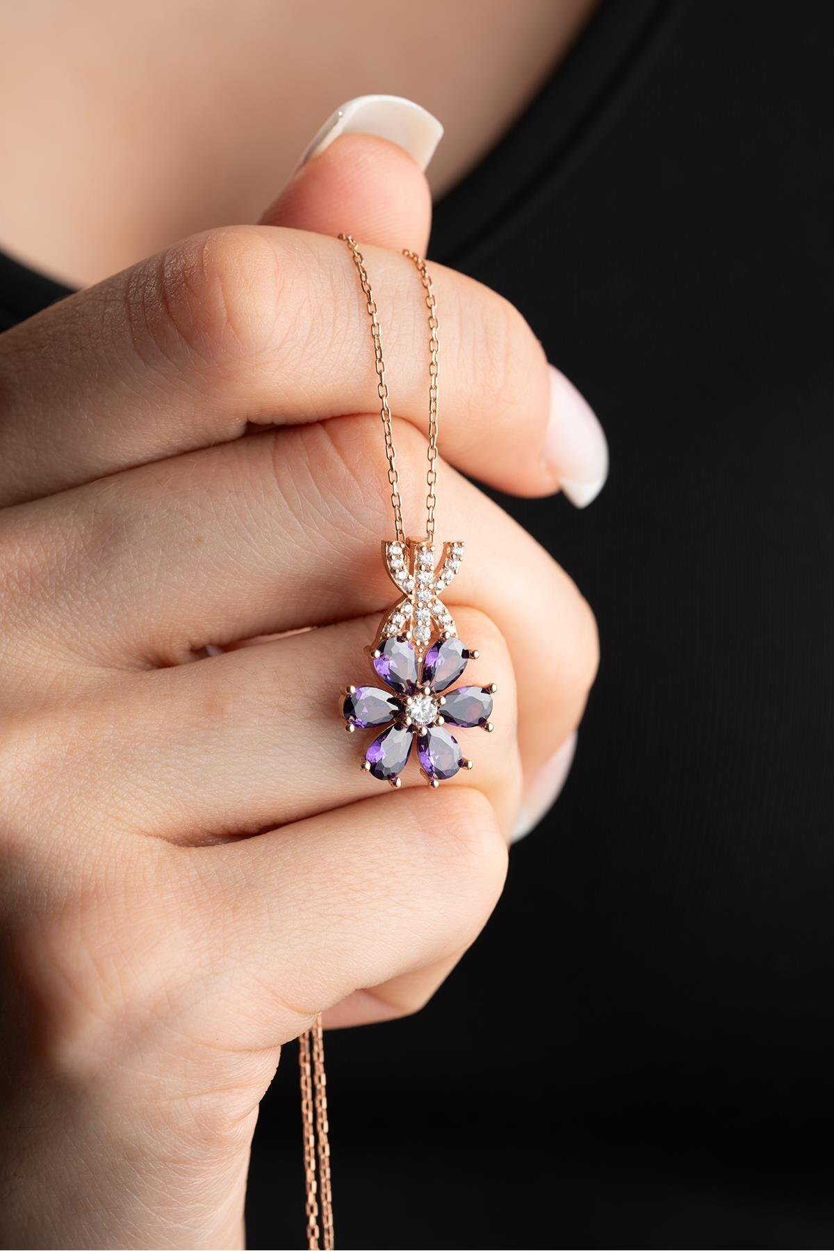 925 Ayar Gümüş Ametist Taşlı Minimal Tektaş Kolye 925 Ayar Gümüş Ametist Taşlı Minimal Tektaş Kolye ST925KOLYE110 تک سایز