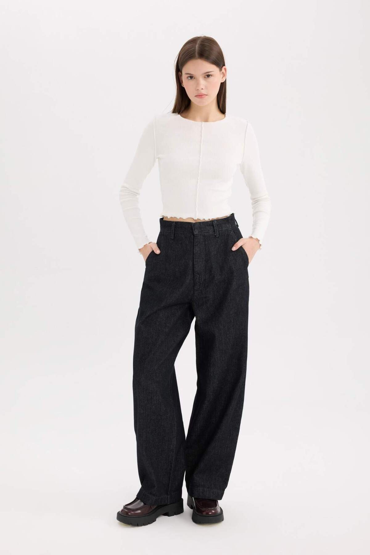 Wide Leg Geniş Paça Bağcıklı Uzun Jean Pantolon E5707AX25SP Wide Leg Geniş Paça Bağcıklı Uzun Jean Pantolon E5707AX25SP 46