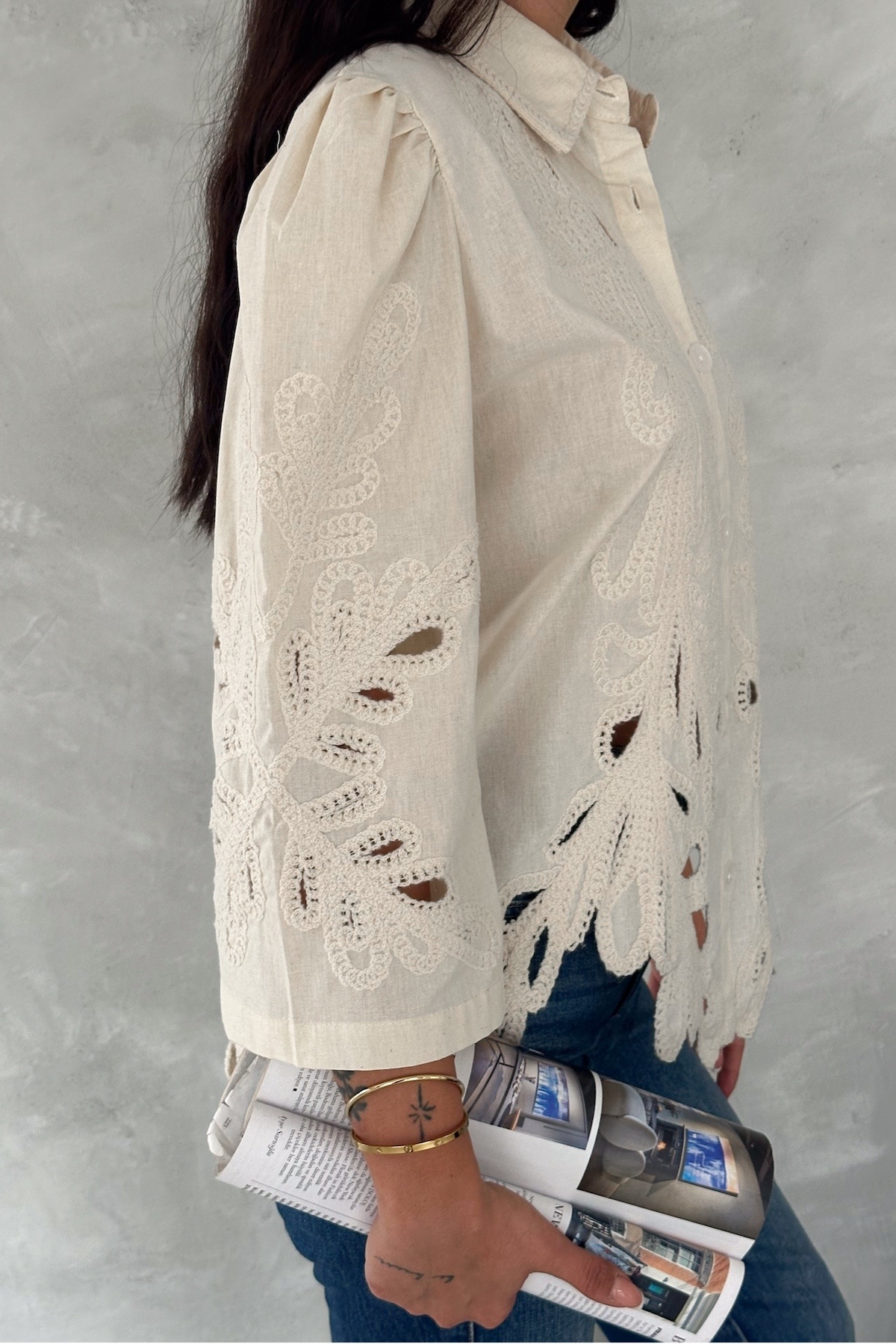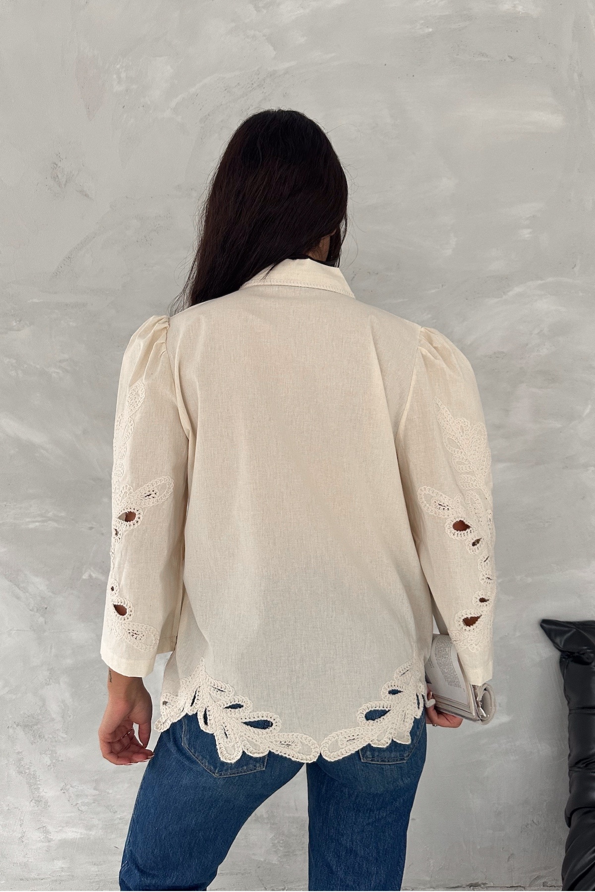 Kadın Bej Fakir Kol Fisto Nakışlı Gömlek Kadın Bej Fakir Kol Fisto Nakışlı Gömlek 2761 L