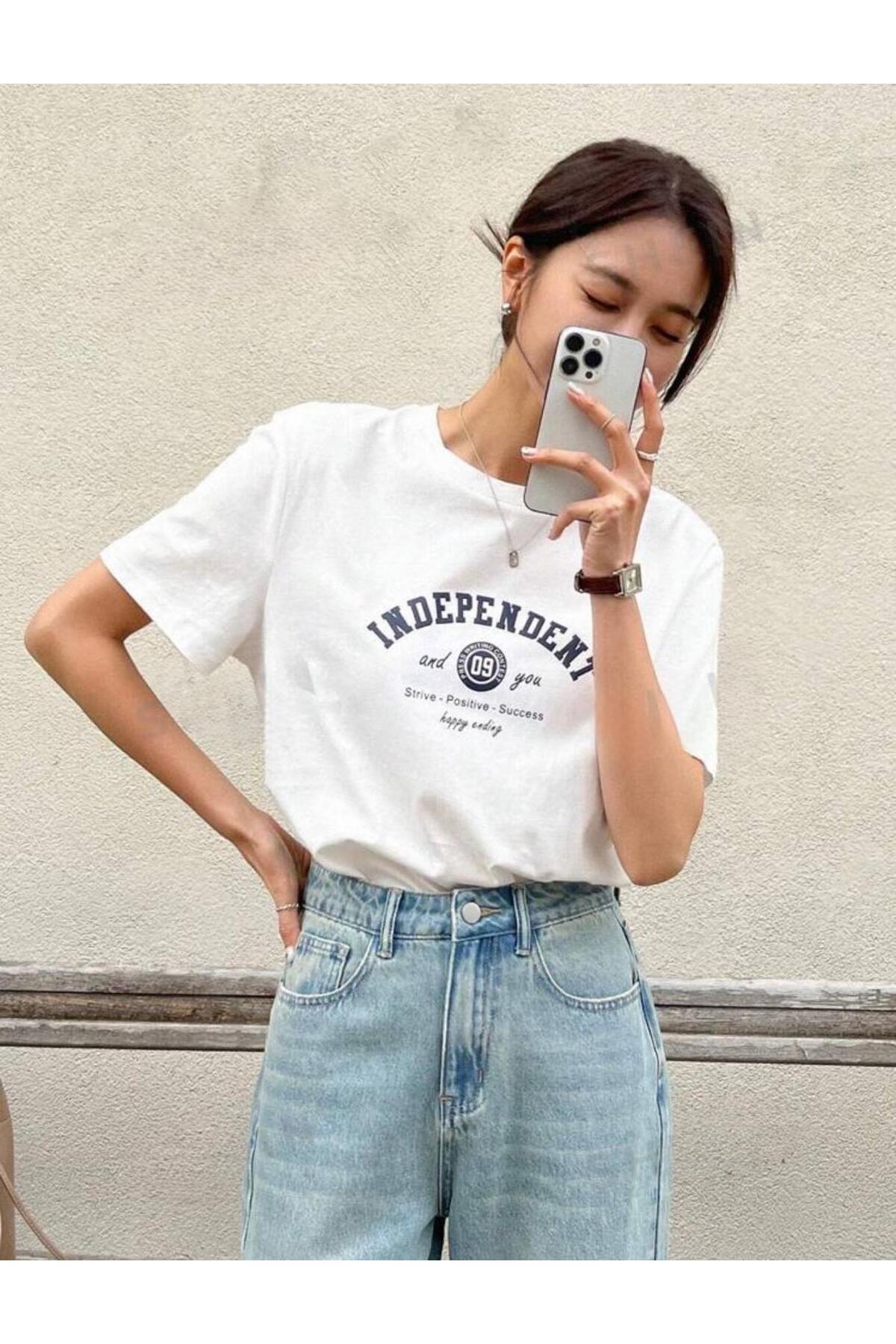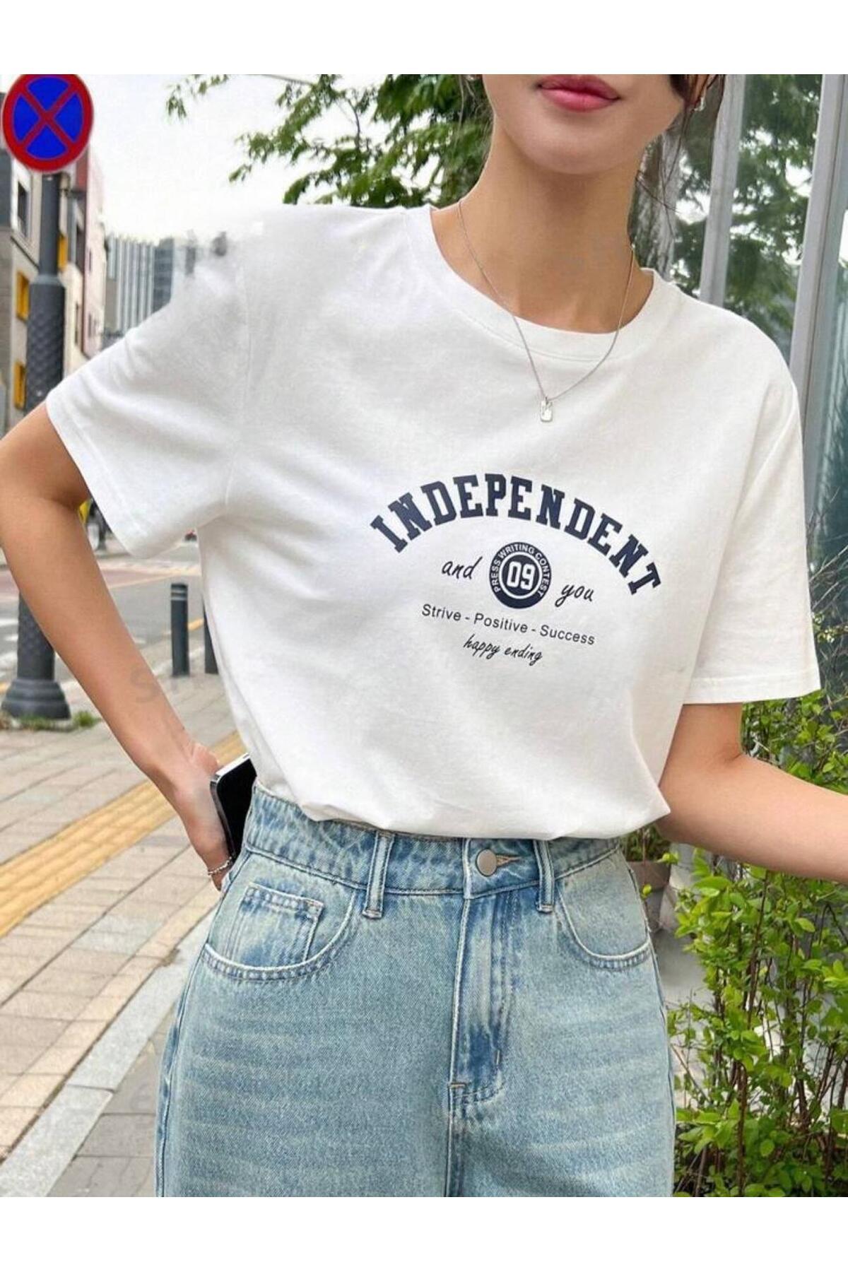 Independent Baskılı Kadın Rahat Kalıp Pamuk Penye Kısa Kollu Yuvarak Yaka Beyaz T-shirt Independent Baskılı Kadın Rahat Kalıp Pamuk Penye Kısa Kollu Yuvarak Yaka Beyaz T-shirt TS194 2XL