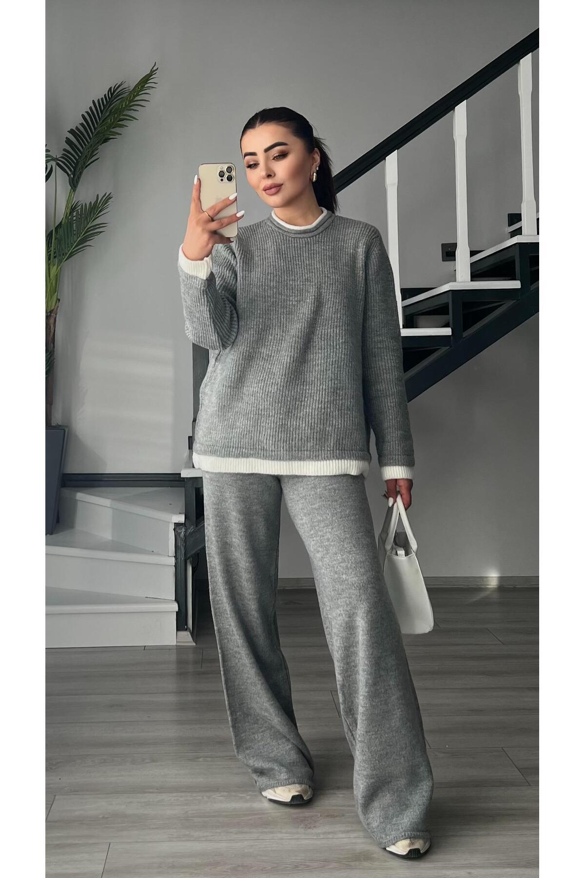 Gri Ekru Geçişli Triko Takım Gri Ekru Geçişli Triko Takım TK2024197 Standart