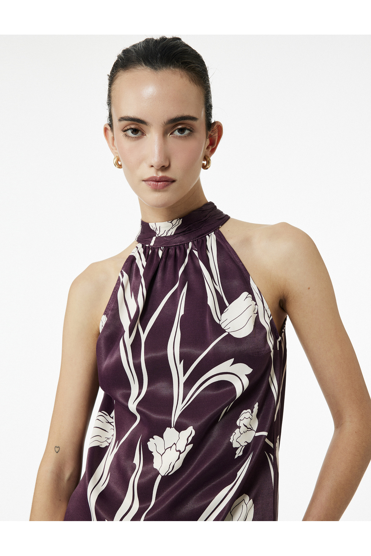 Çiçek Desenli Kolsuz Halter Yaka Viskon Bluz Çiçek Desenli Kolsuz Halter Yaka Viskon Bluz 5SAK60190UW 48