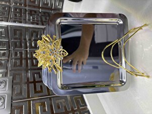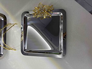 6 lı taşlı çiftdal papatya aksesuarlı gümüş paslanmaz kahve çay servis sunum tepsisi taşlı123