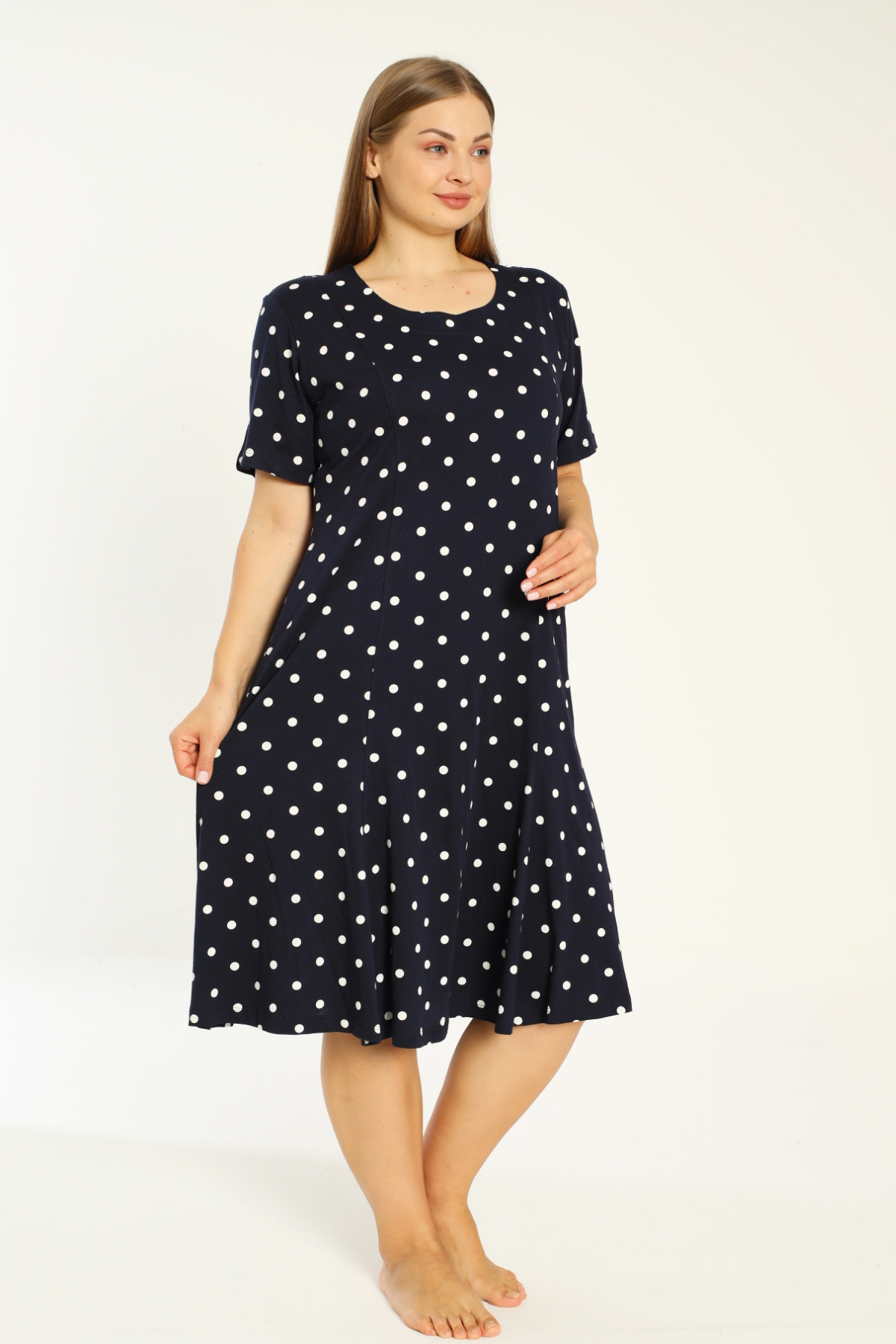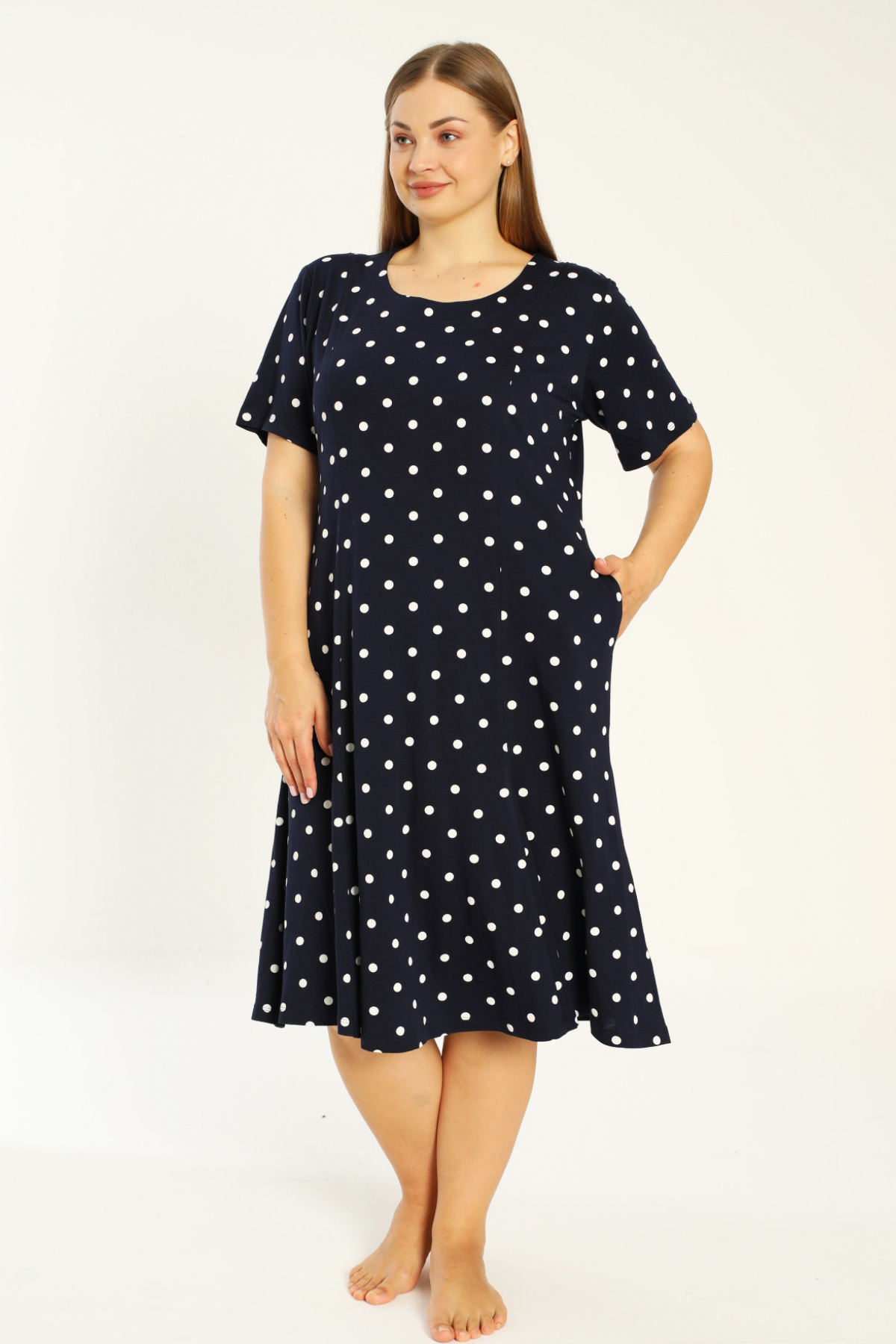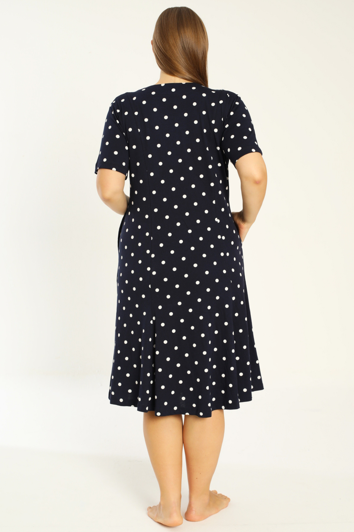 lacivert puantiyeli kısa kollu cepli pamuklu büyük beden elbise lacivert puantiyeli kısa kollu cepli pamuklu büyük beden elbise 251644 4XL