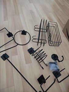 Yapışkanlı Siyah Fön Makinesi Askısı Havluluk Tuvalet Kağıtlık Rulo Havluluk Şampuanlık 9'lu Set Yapışkanlı Siyah Fön Makinesi Askısı Havluluk Tuvalet Kağıtlık Rulo Havluluk Şampuanlık 9'lu Set 9luset تک سایز