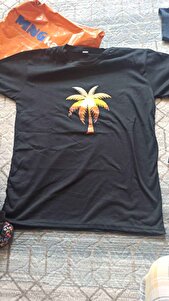 Büyük Palmiye Ağacı Baskılı Pamuk Penye Yuvarlak Yaka Siyah T-shirt Büyük Palmiye Ağacı Baskılı Pamuk Penye Yuvarlak Yaka Siyah T-shirt TS146 2XL
