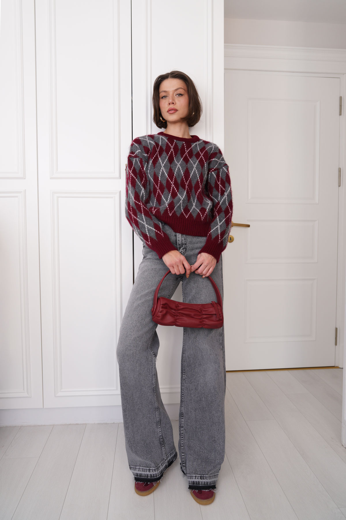 Kadın Baklava Desenli Yün Kazak Kadın Baklava Desenli Yün Kazak JC16012502 Standart