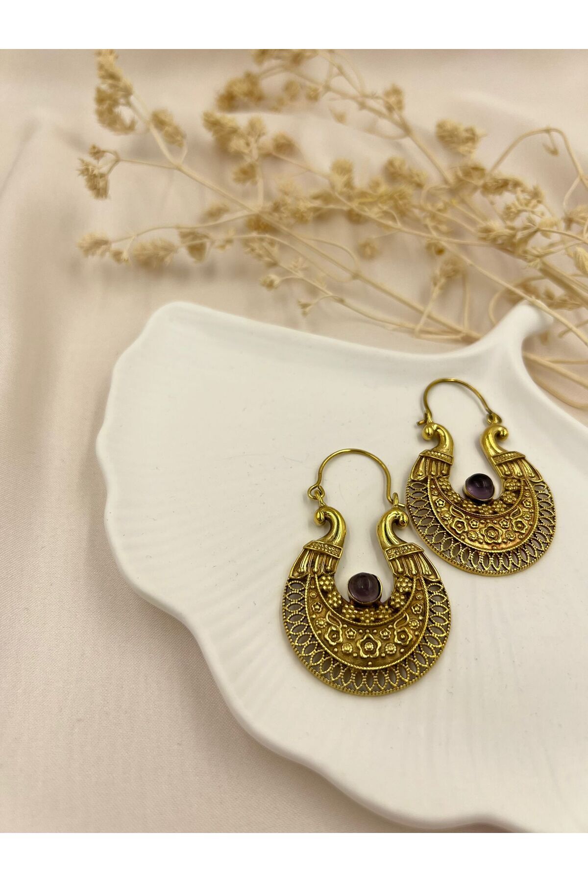 Matya Altın Renk Lak Kaplama Çivili Mor Taşlı Model Küpe Matya Altın Renk Lak Kaplama Çivili Mor Taşlı Model Küpe MTYKP8684553847859 32 mm