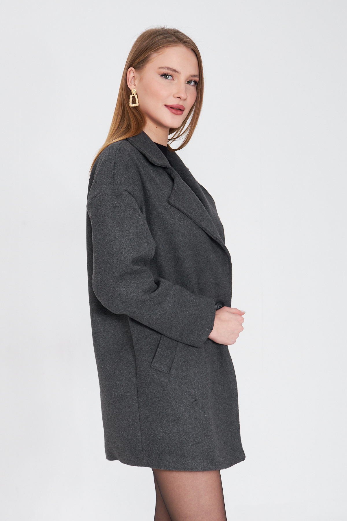 Kadın Antrasit Oversize Astarlı Kaşe Kaban / Sevde Ugur Kadın Antrasit Oversize Astarlı Kaşe Kaban / Sevde Ugur KISA1 XL