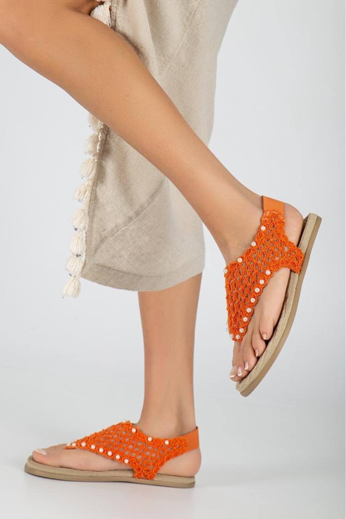 Kırmızı Taş Detaylı Puf Sandalet Kırmızı Taş Detaylı Puf Sandalet taşlıpufsandalet 40