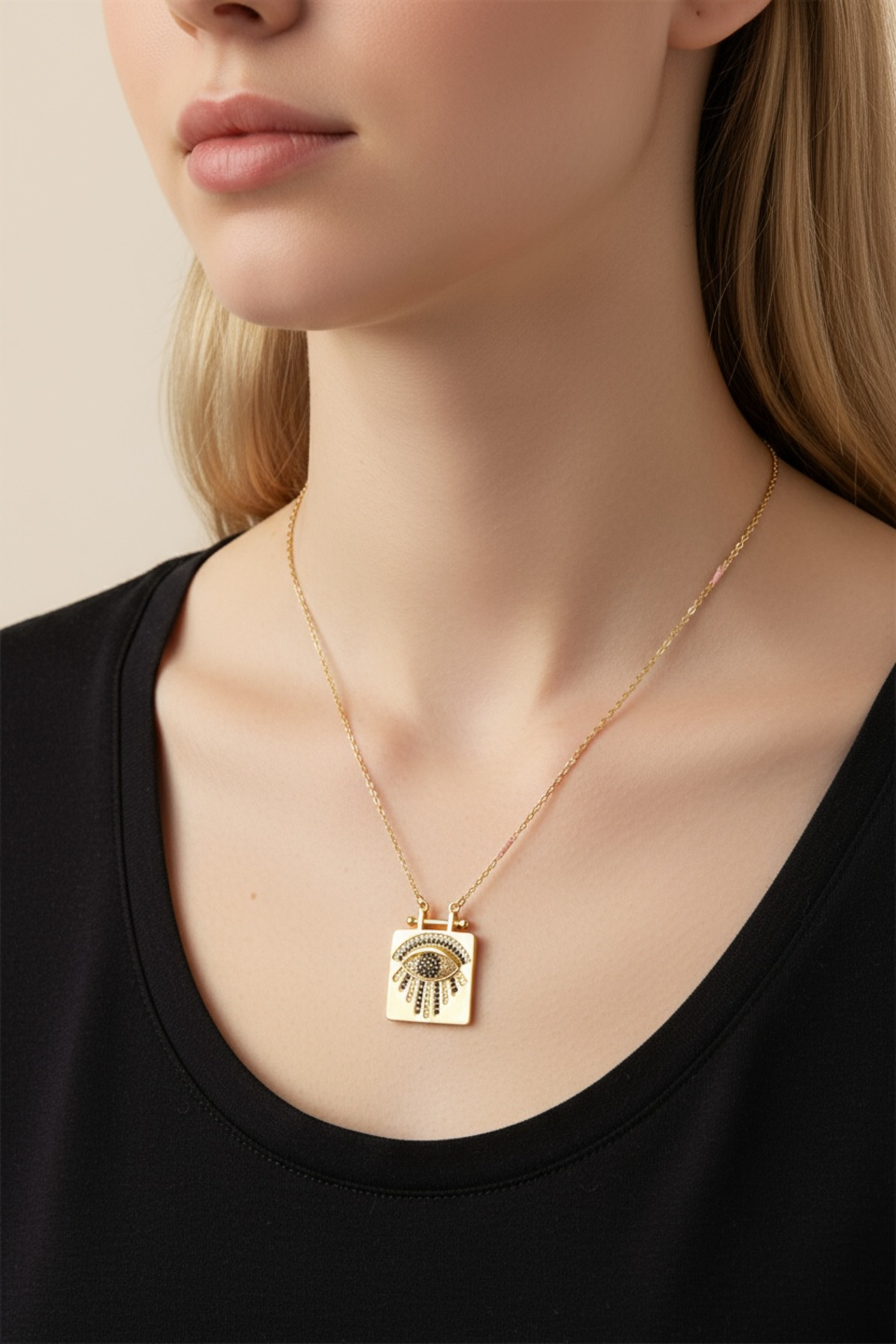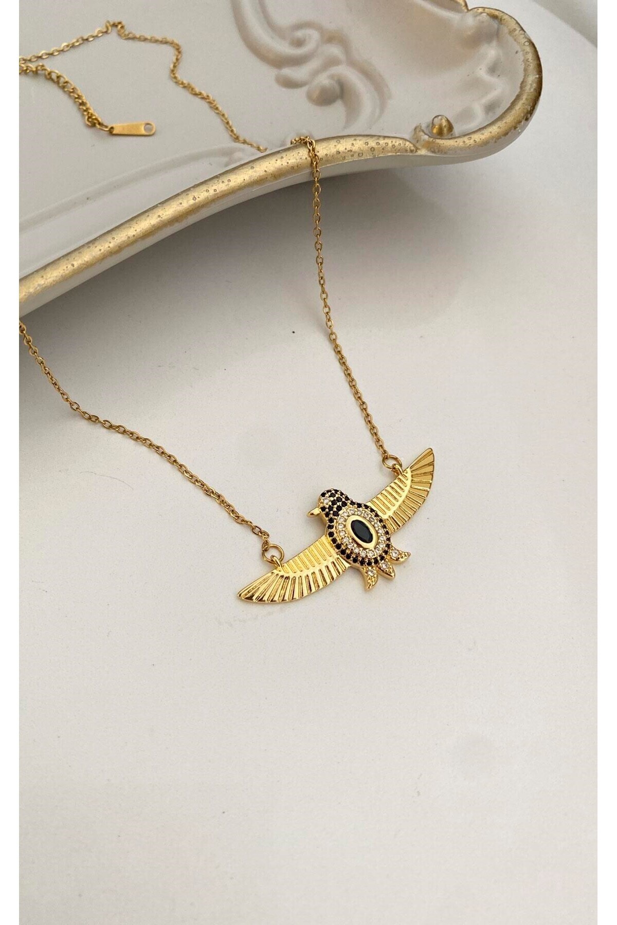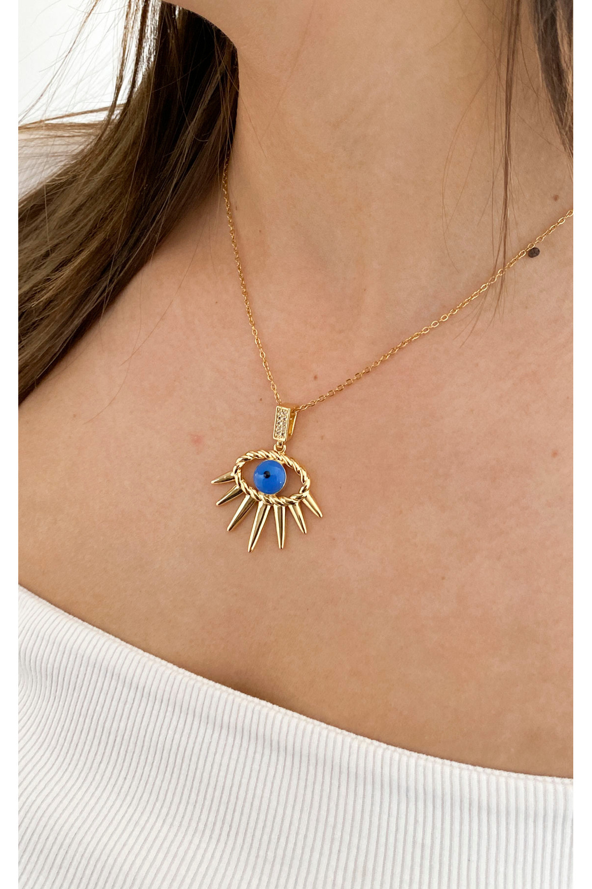 Yıldız Figürlü Zirkon Taşlı Gold Çelik Kolye Yıldız Figürlü Zirkon Taşlı Gold Çelik Kolye 529KLYALT0160000851 تک سایز